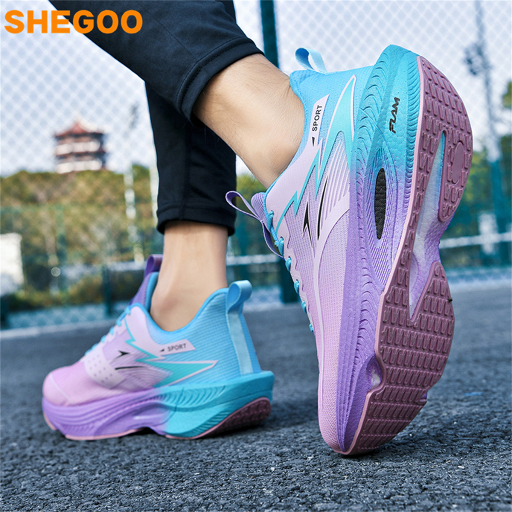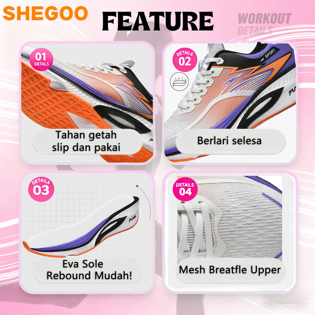 SHEGOO Professional Marathon Kasut Sukan Running Perempuan Sport Shoes Women Men Mesh Breathable Soft Soled Lightweight Non Slip Jogging Shoes