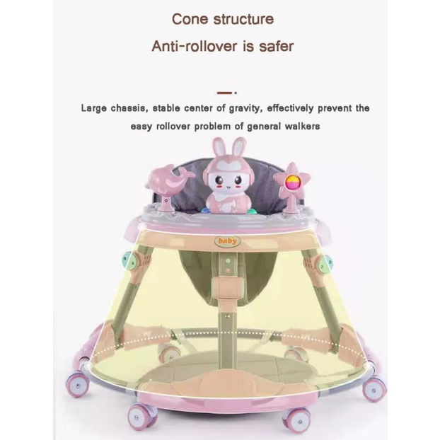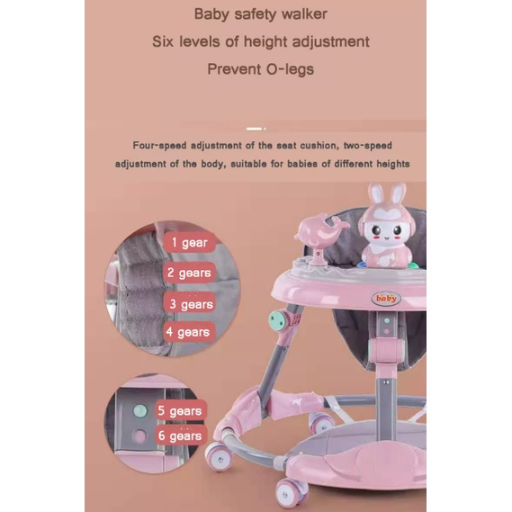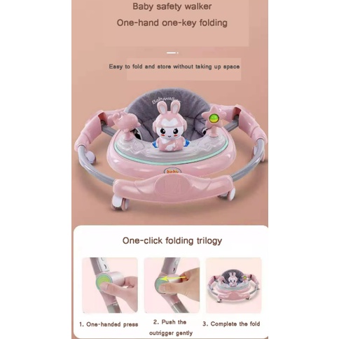 ~Ship From KL~ Baby Walker with Music Anti-O-Leg Foldable Portable Folding Adjustable Height Push Walkers Toddler