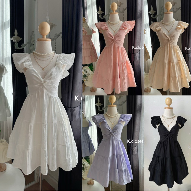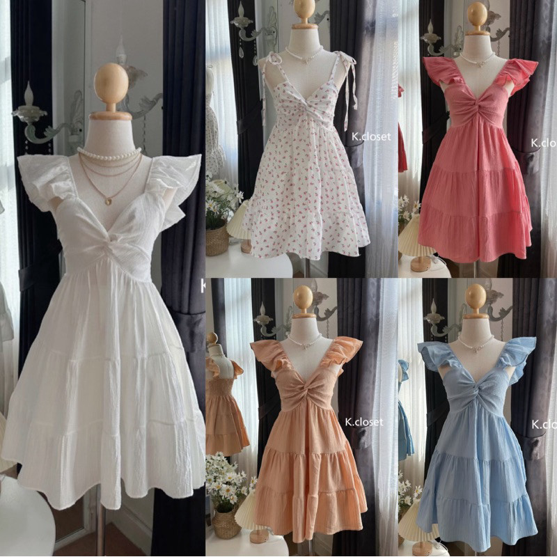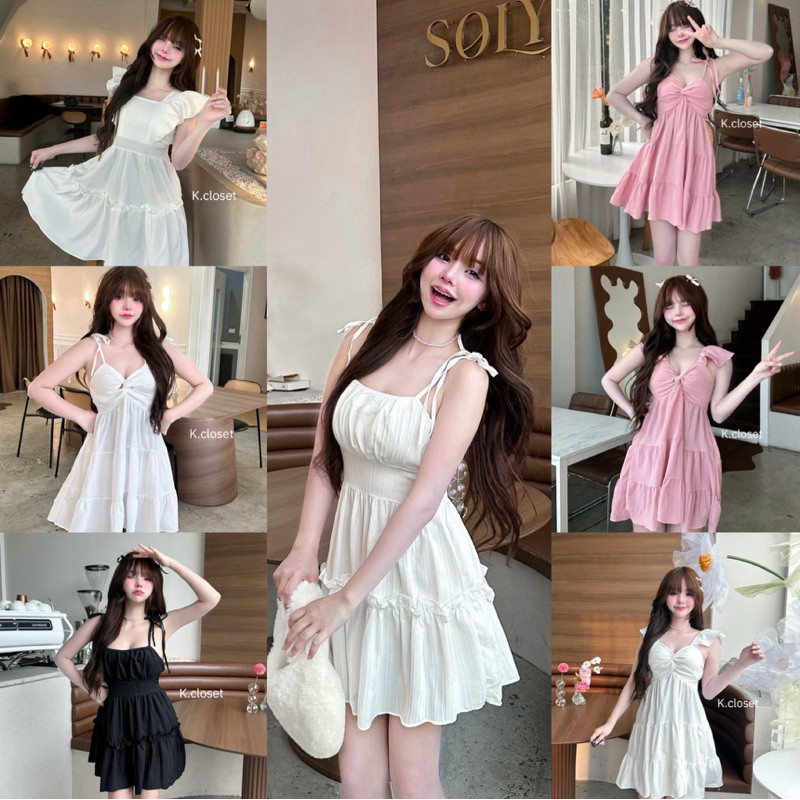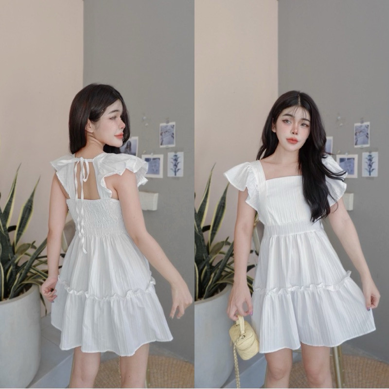 Shipped From Thailand Fast Delivery!!️!!️Mini Dress With Bow Tie Cute And Beautiful Style Mini