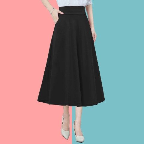 [Ships From Selangor]new long skirt women's A-line skirt large high waist skirt medium length skirt Will not transmit light