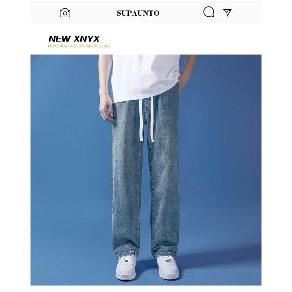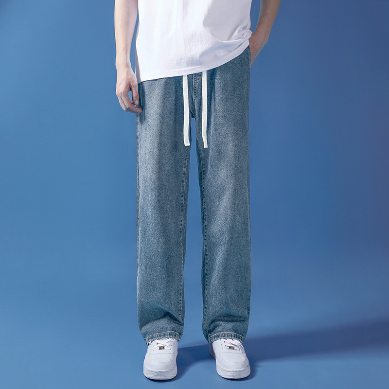 #ShopeeMY Korean Jeans Men Jeans Men Casual Trend Loose Drawstring Straight Cut Jeans Seluar jeans lelaki [6040]