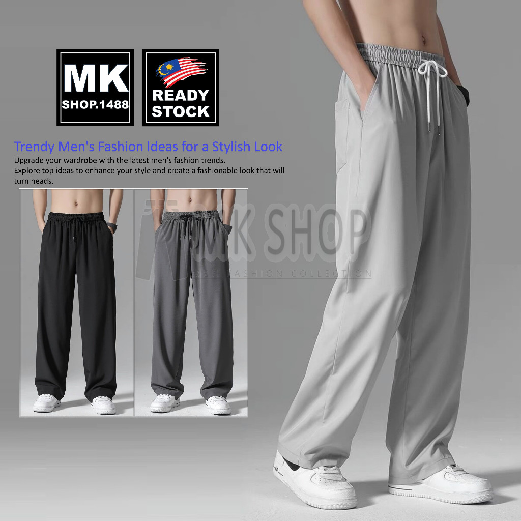 ShopeeMY MKShop Trousers Male Loose Drape Pants For Men Ice Silk Casual Pants Straight Casual Pants Seluar Lelaki (H01)