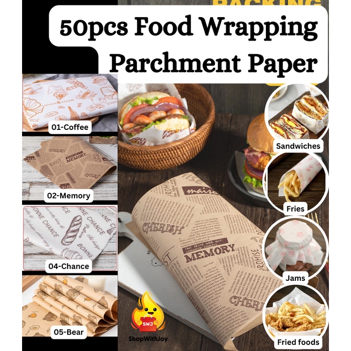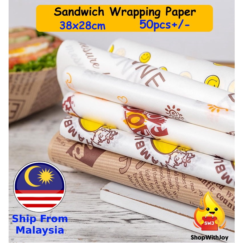 【ShopWithJoy】50pcs Sandwich Paper Food Wrapping Toast Food Wrap Food Paper Kertas Pembalut Makanan