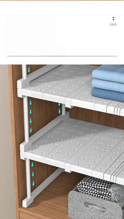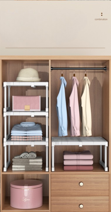 【ShopWithJoy】Adjustable 27-88cm Clapboard Layer Telescopic Rack Wardrobe Cabinet Storage Organizer Partition With Stand