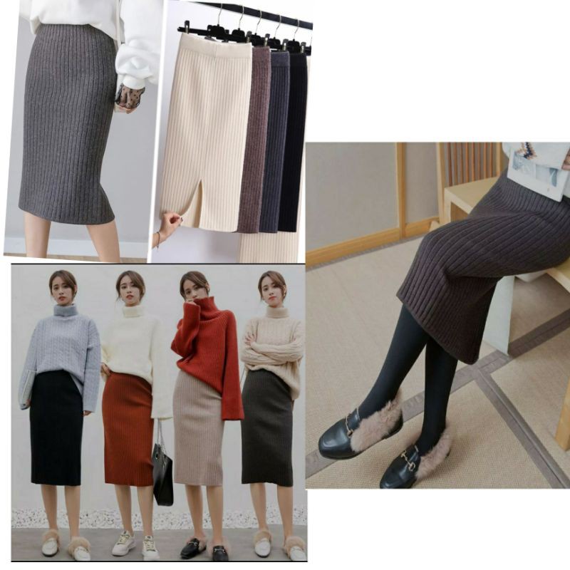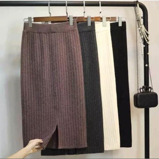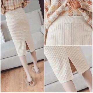 Short Knitted Span Skirt with Split/ Women's Work Skirt Women's size Knitted Pencil Skirt