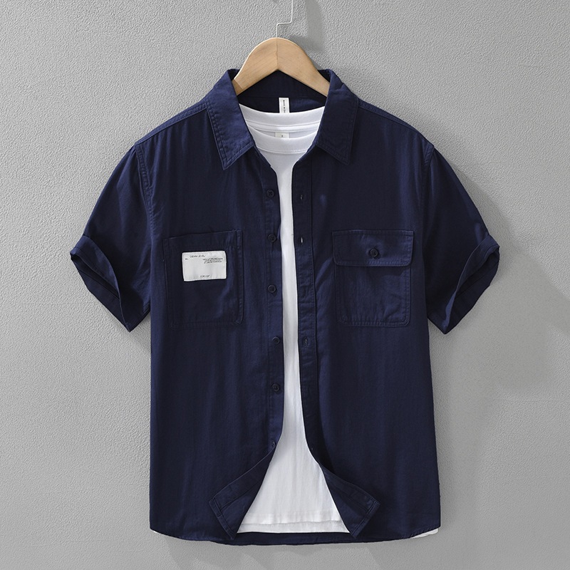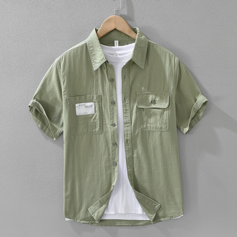 short sleeve Men's Basic Shirt with 2 Pockets, StoreNA Khaki Fabric