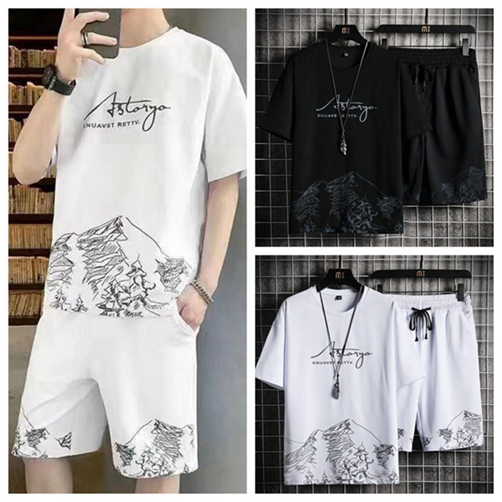 Short Sleeve T-shirt Set Men Summer Two Piece Sets Baju T Shirt Lelaki Sports Set Men Fashion Casual Set Summer Korean Short-sleeved T-shirt Men's Two-piece Shorts T-shirt