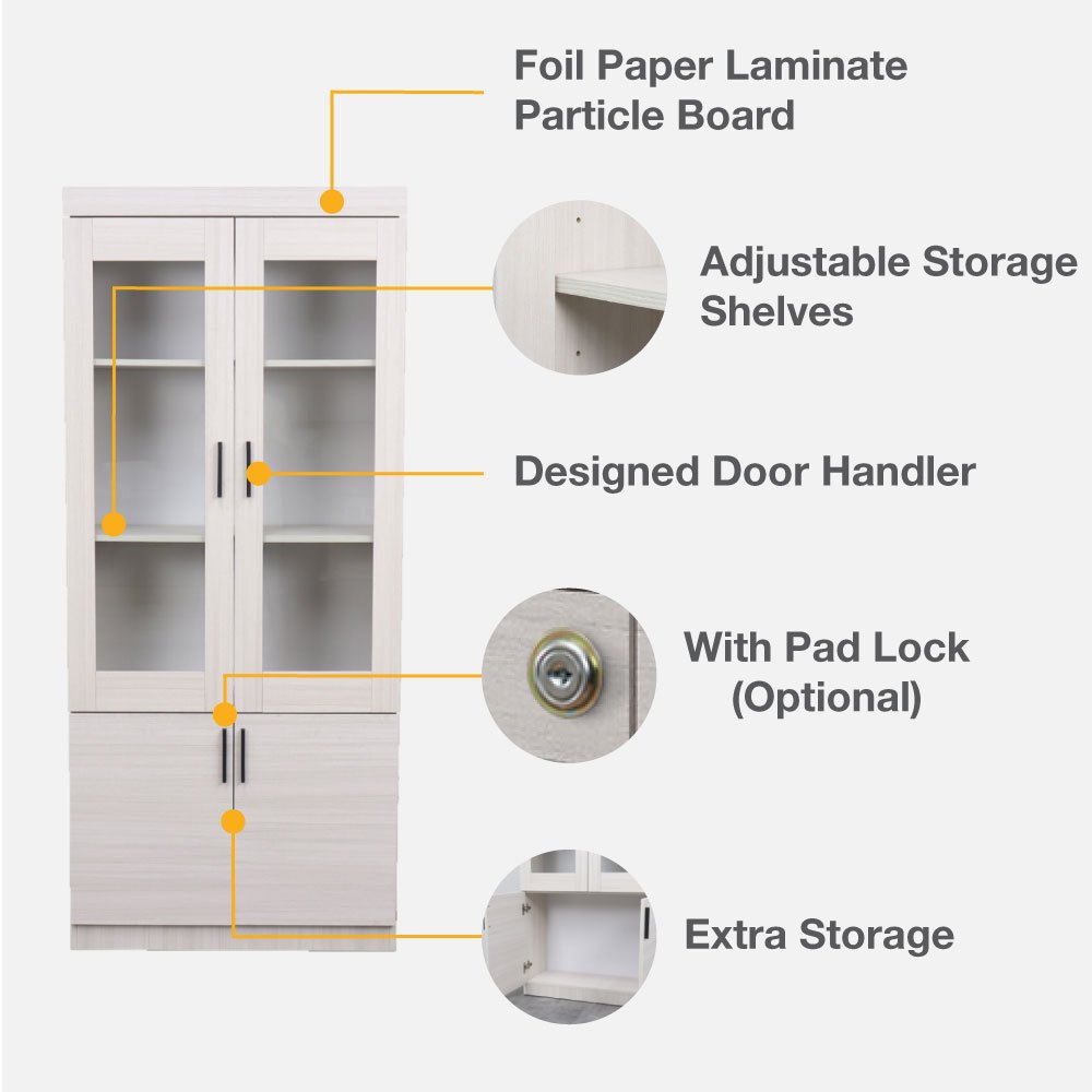 [SIAP PASANG] Como Home 2 Doors Bookcase (BC14) Almari Buku | Multipurpose Storage Cabinet