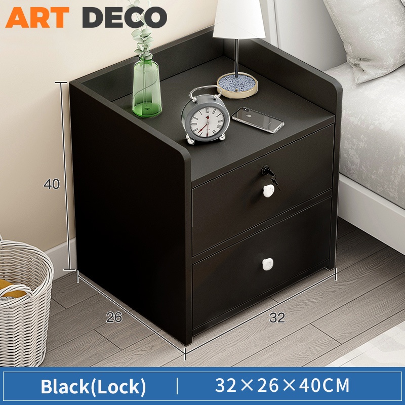 Side Table with Drawer Black Bedside Table Rack Kecil Tepi Katil Almari Sisi Katil Side Table Bedroom Modern Nightstand