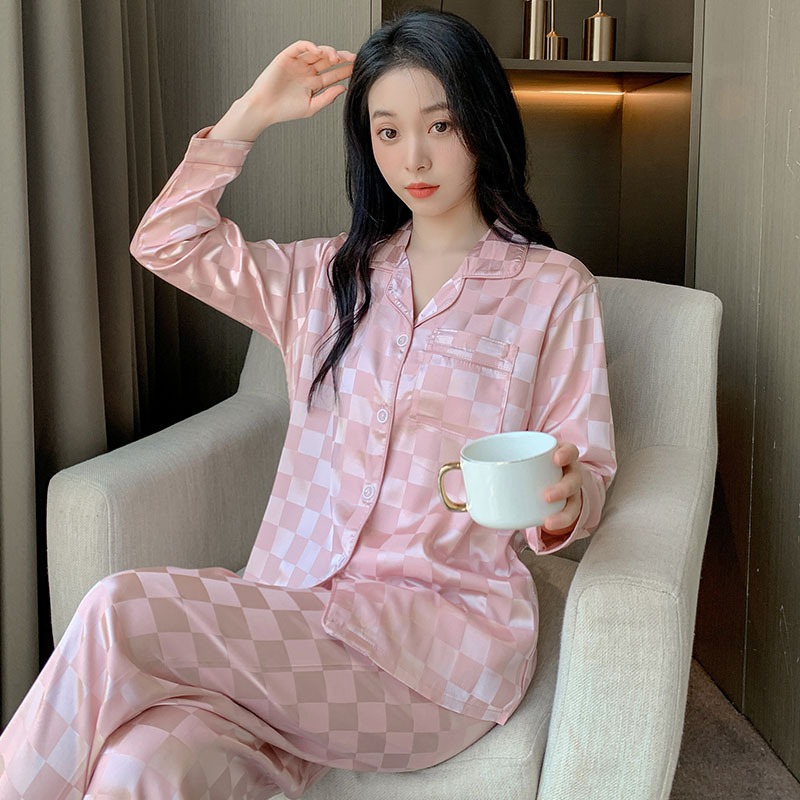 Silk Satin Pyjamas Women Plus Size Long Sleeves Baju Tidur Satin Wanita Plus Size 6XL Baju Tido Pajamas Women 睡衣