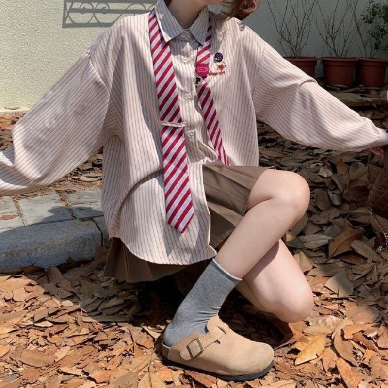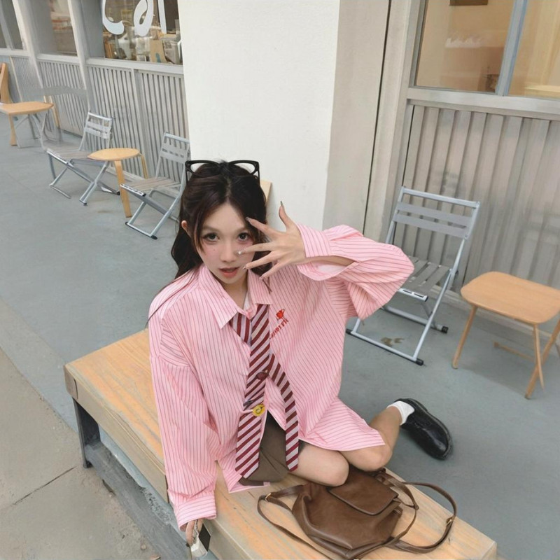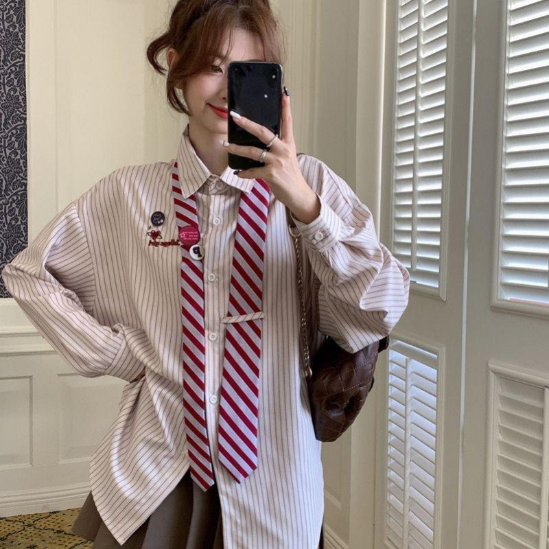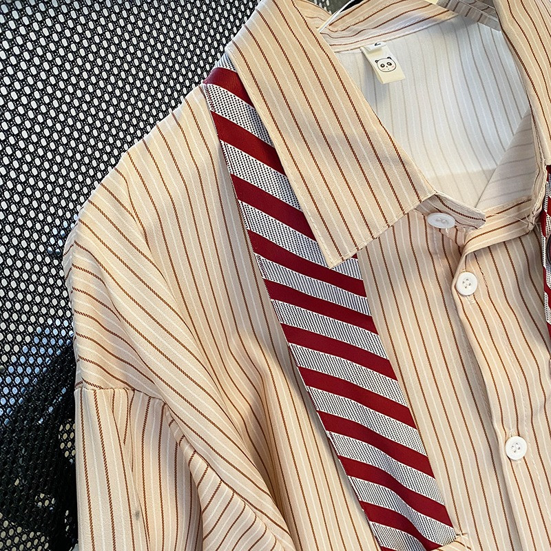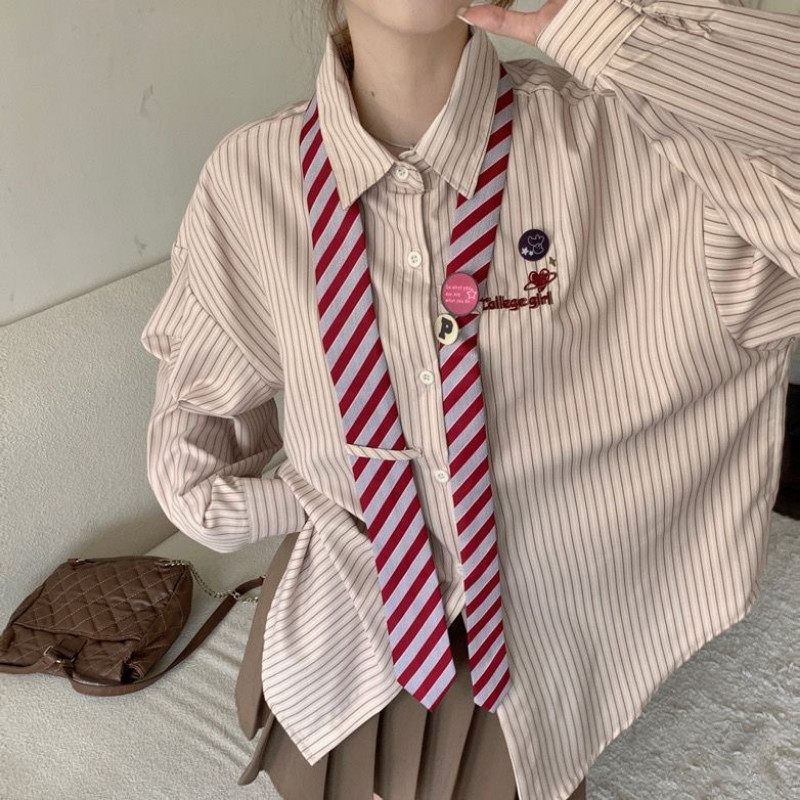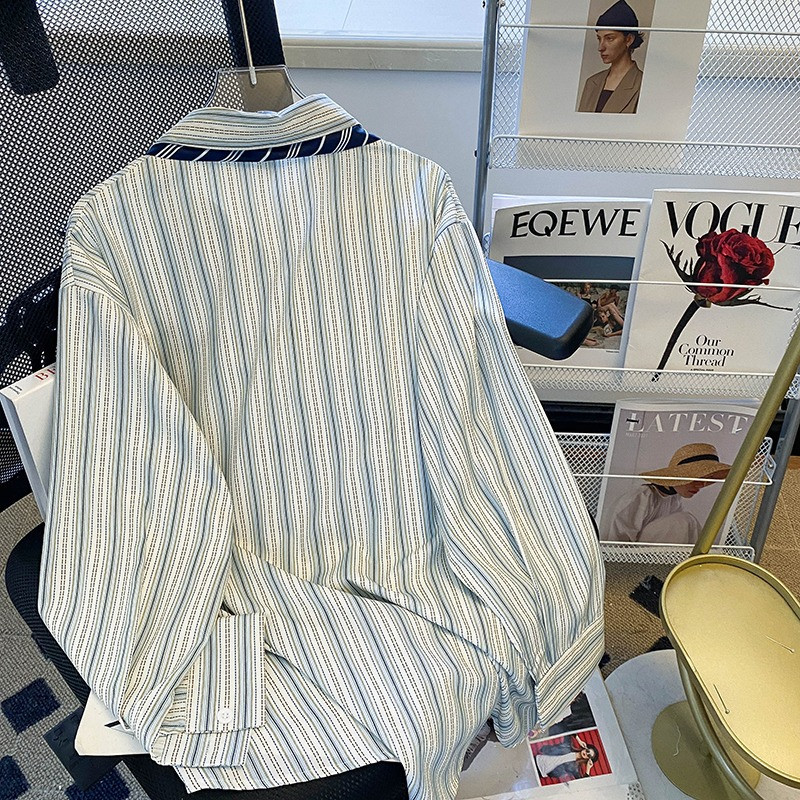 Simple Long Sleeve Striped POLO Collar Shirt with Embroidery Details for Various Occasions