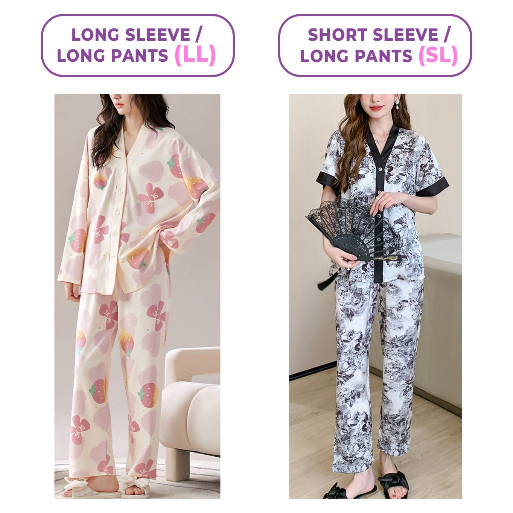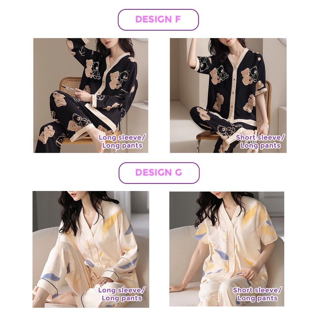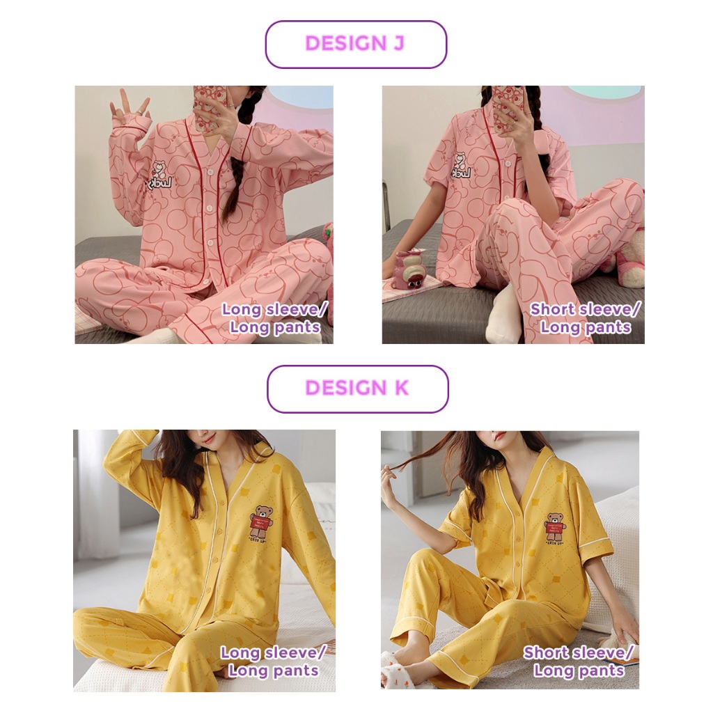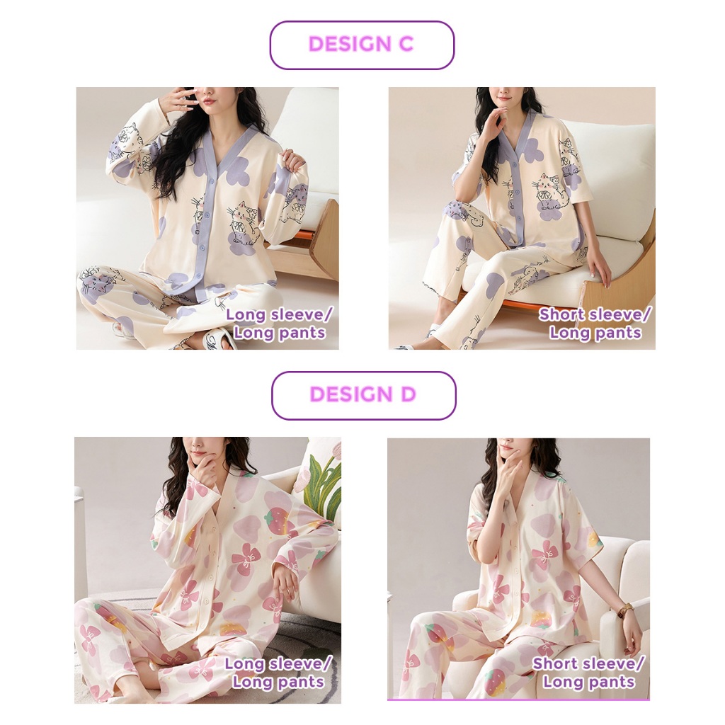 Simple Set Pyjamas Women Long Sleeve Floral Print Pajama Woman Sleepwear Girl Baju Tidur Set Lengan Panjang Wanita PJ025