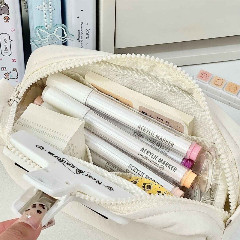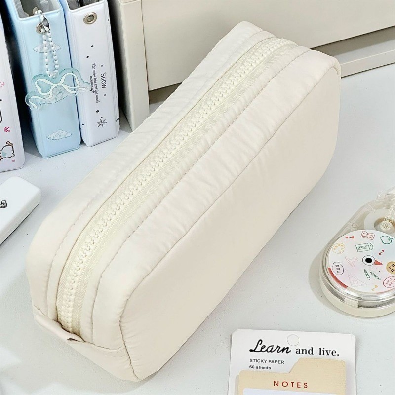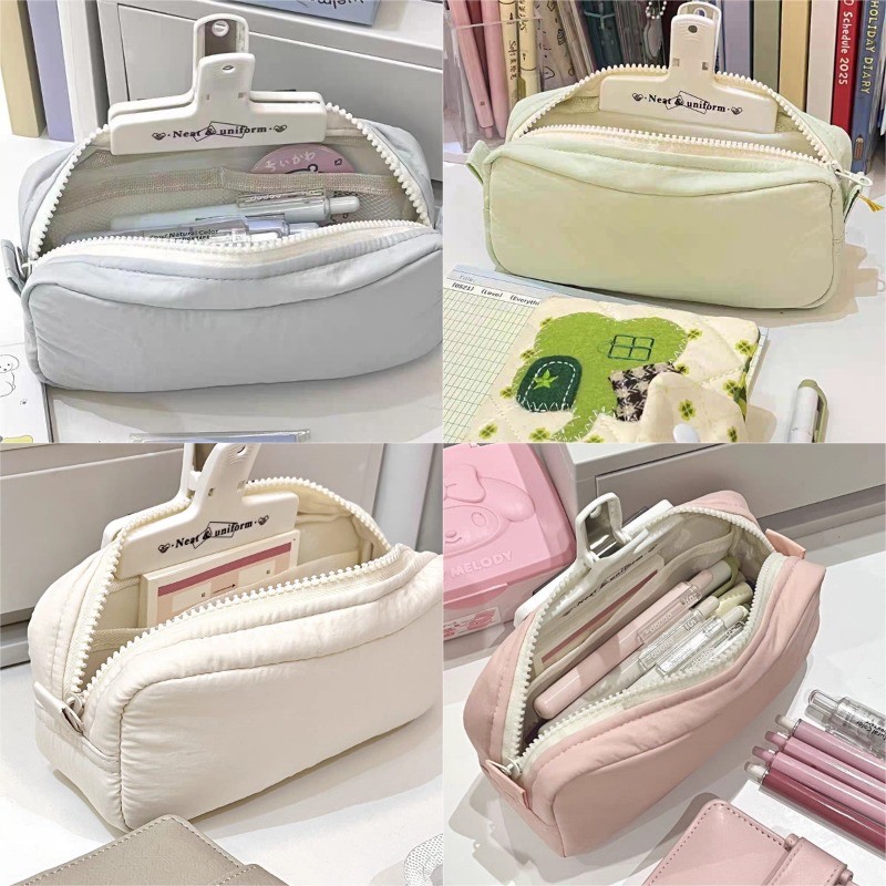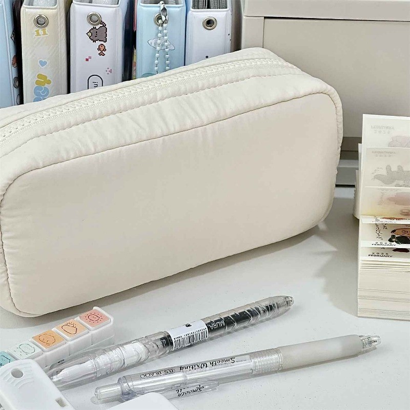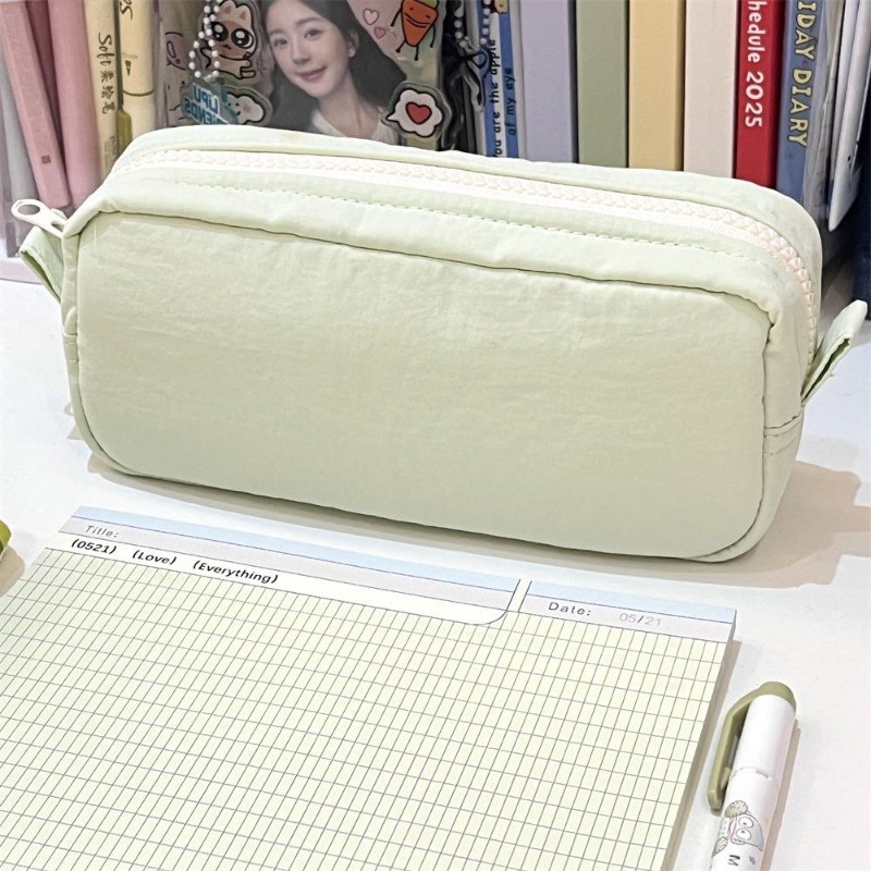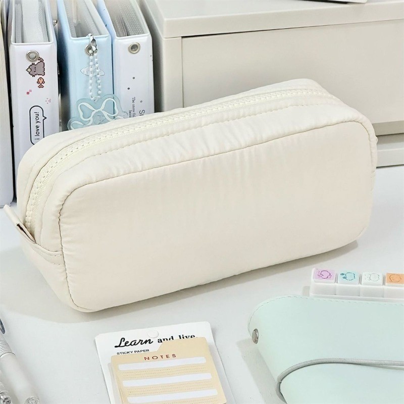 Simple Solid Color Square Pencil Case Large Capacity Classified Storage Pencil Box Multifunctional Student Stationery Organizer