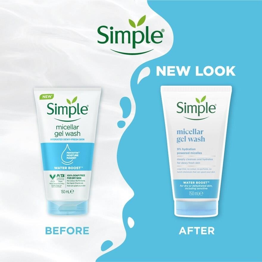 SIMPLE Water Boost Micellar Facial Gel Wash 150ML - Deeply Cleanses & Hydrates For Dewy Fresh Skin