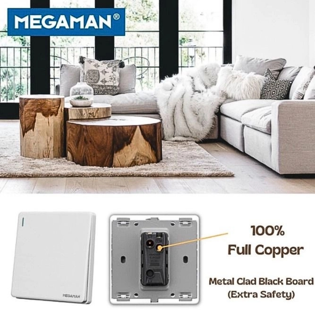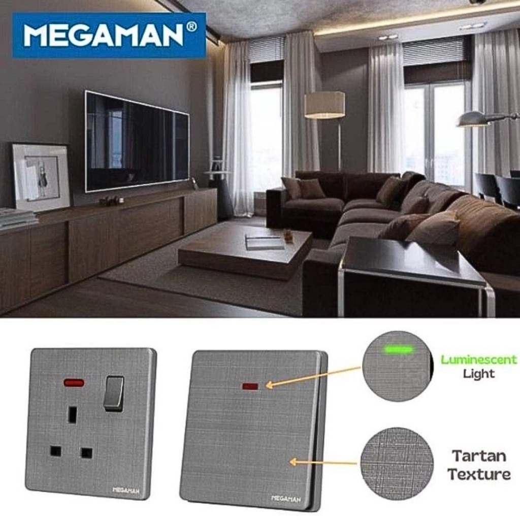[SIRIM] Megaman Z8 Switch Socket and Wall Switch Modern Tartan Texture Design 13A 15A 20A 45A Door Bell Astro White/Grey