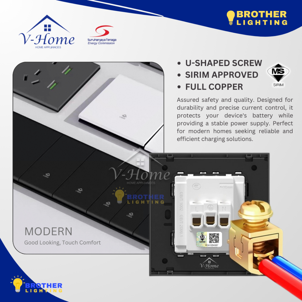 [SIRIM] VHome® Black Switch UV Skin Texture Premium Switches Suis Socket Wall Slim Modern Design 13A 15A 20A