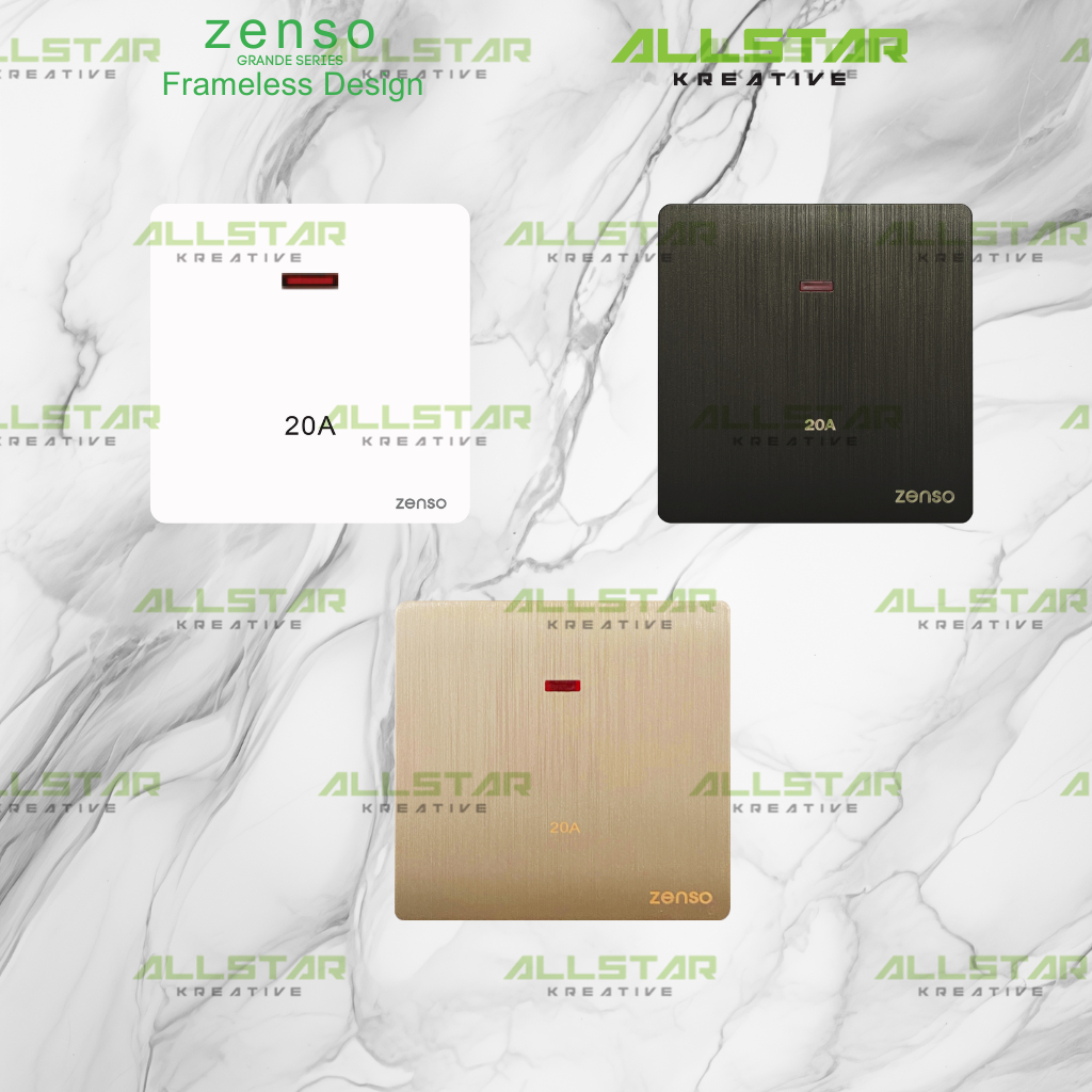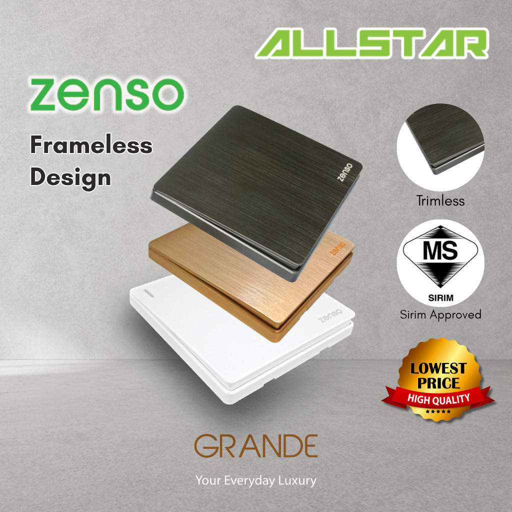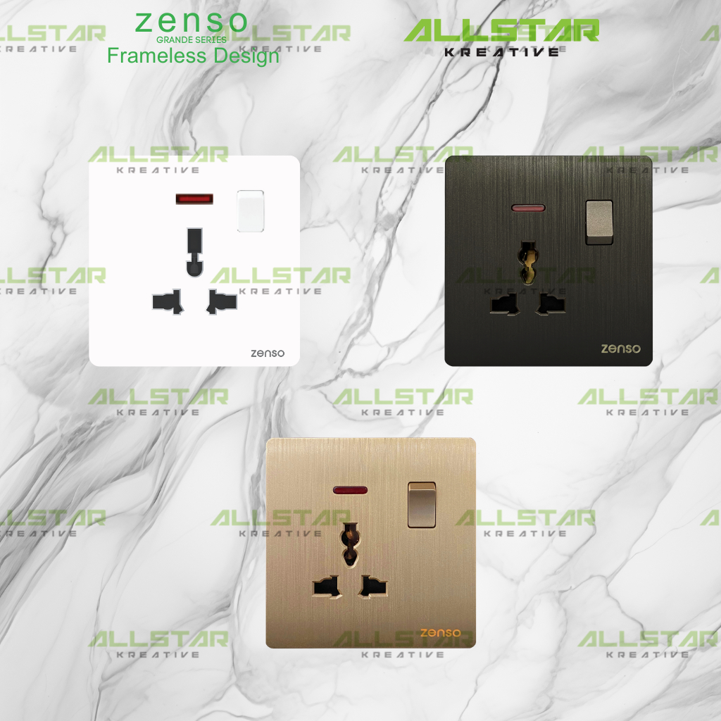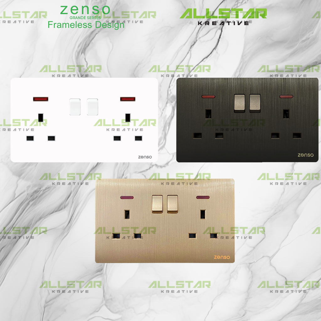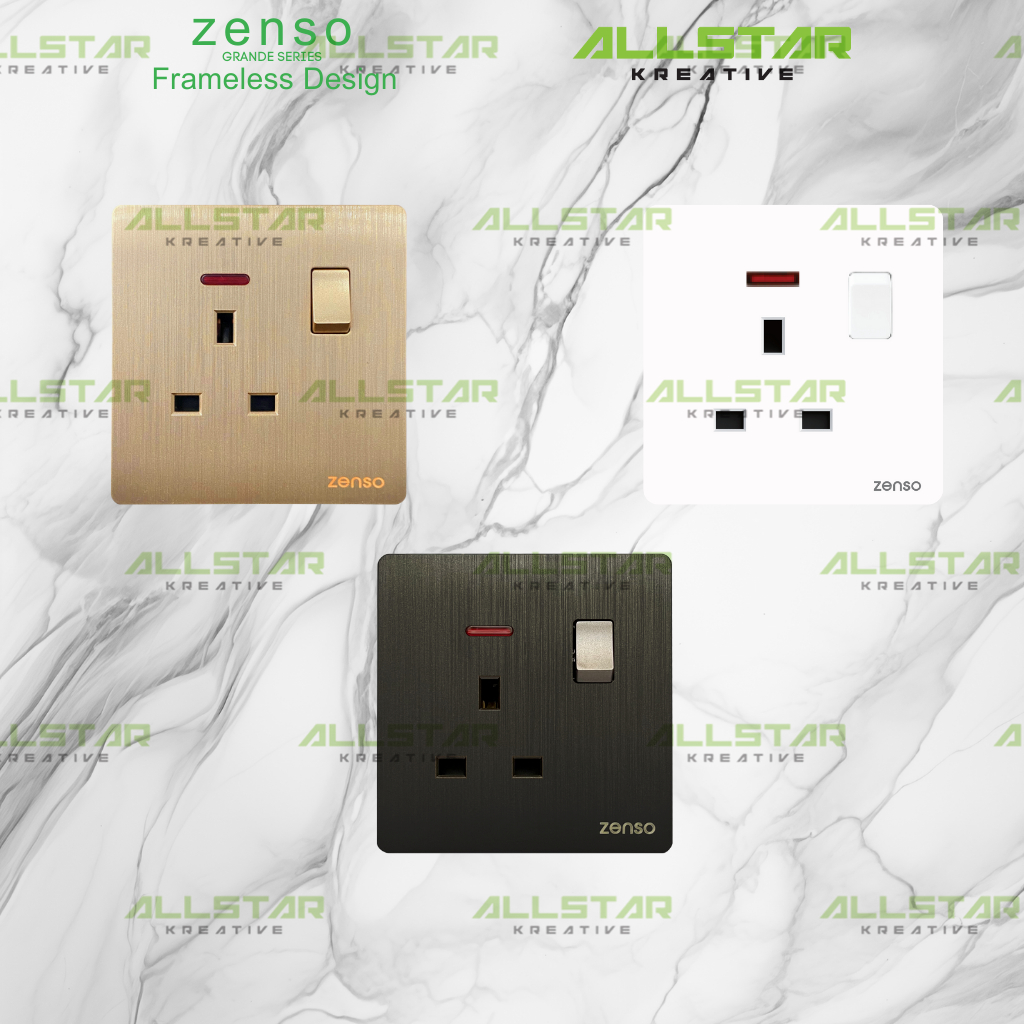 [SIRIM] Zenso Grande Socket and Wall Switch Slim Modern Switches Design 13A 15A 20A/45A Door Bell [White/Black/Gold]