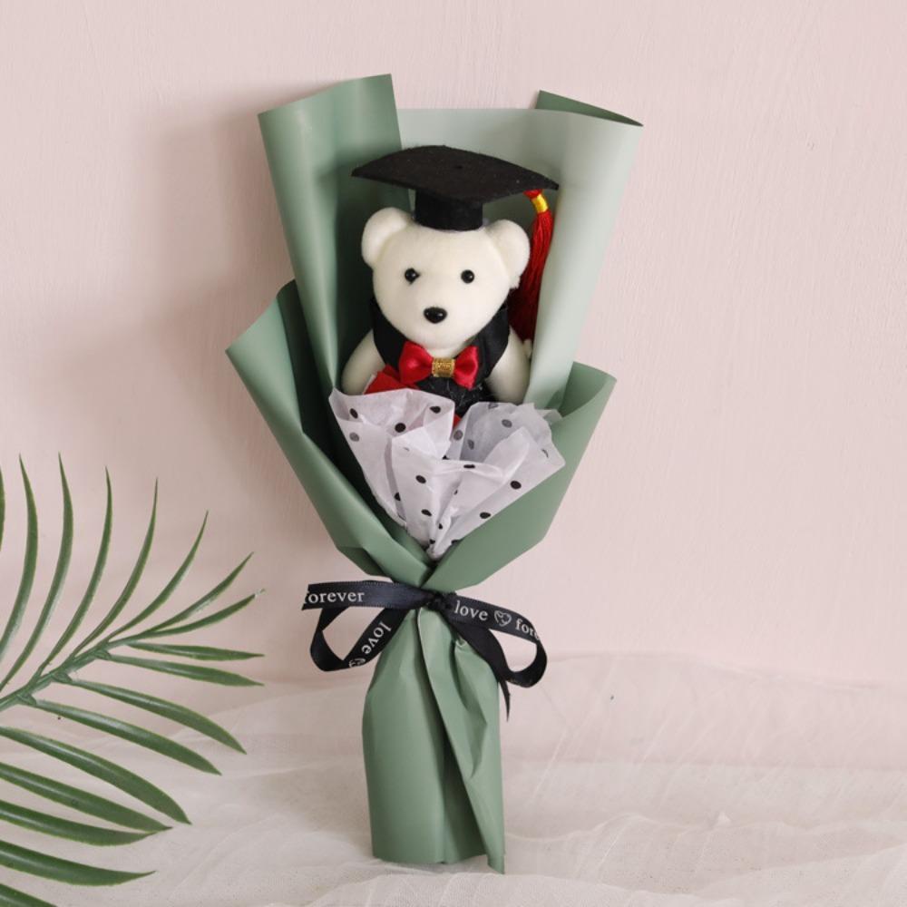 SIXIS Graduation Bear Bouquet Finished Hand Woven Bouquet Cute Dr. Bear Decor Flower Student Graduation Gift
