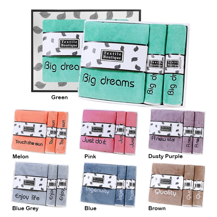SKM Wording Soft & Comfortable Thickened Absorbent Gift Bath Towel Three-Piece Set Tuala L21 HM21