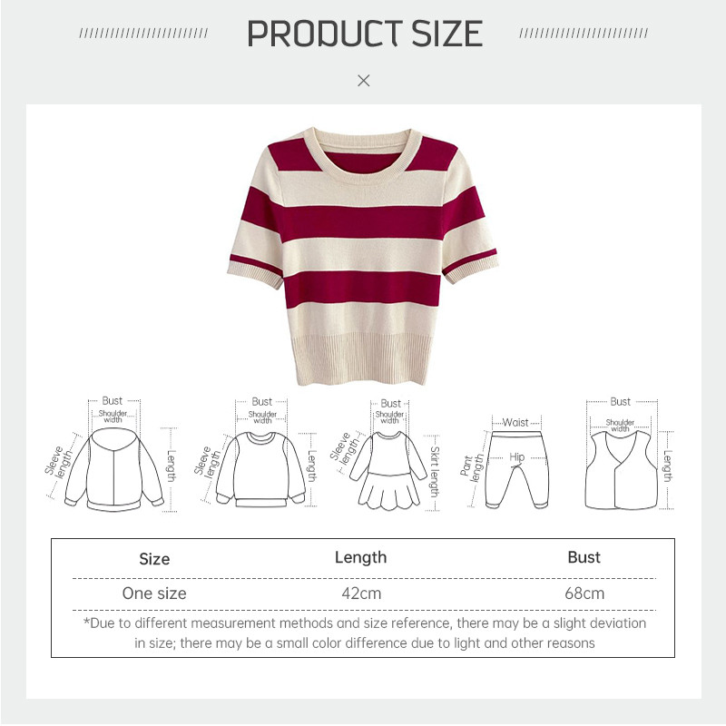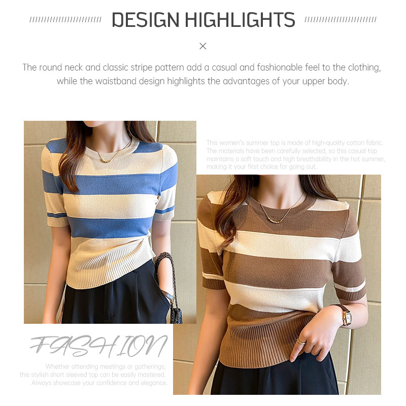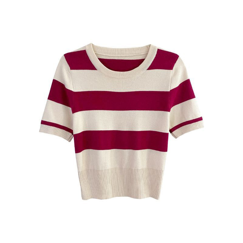 SL Short Top Korean Version Thin Striped Short Sleeve Women Slim Fitting Knitwear