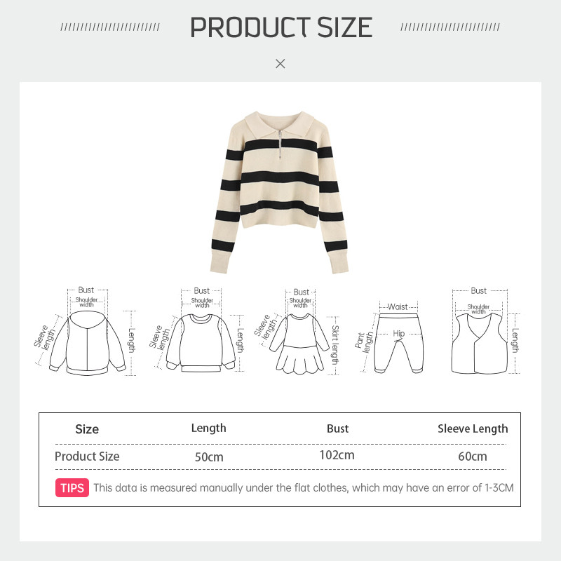 SL Striped Knitwear Women Niche Long Sleeved Bottoming Shirt Turn-down Collar Zipper Sweater