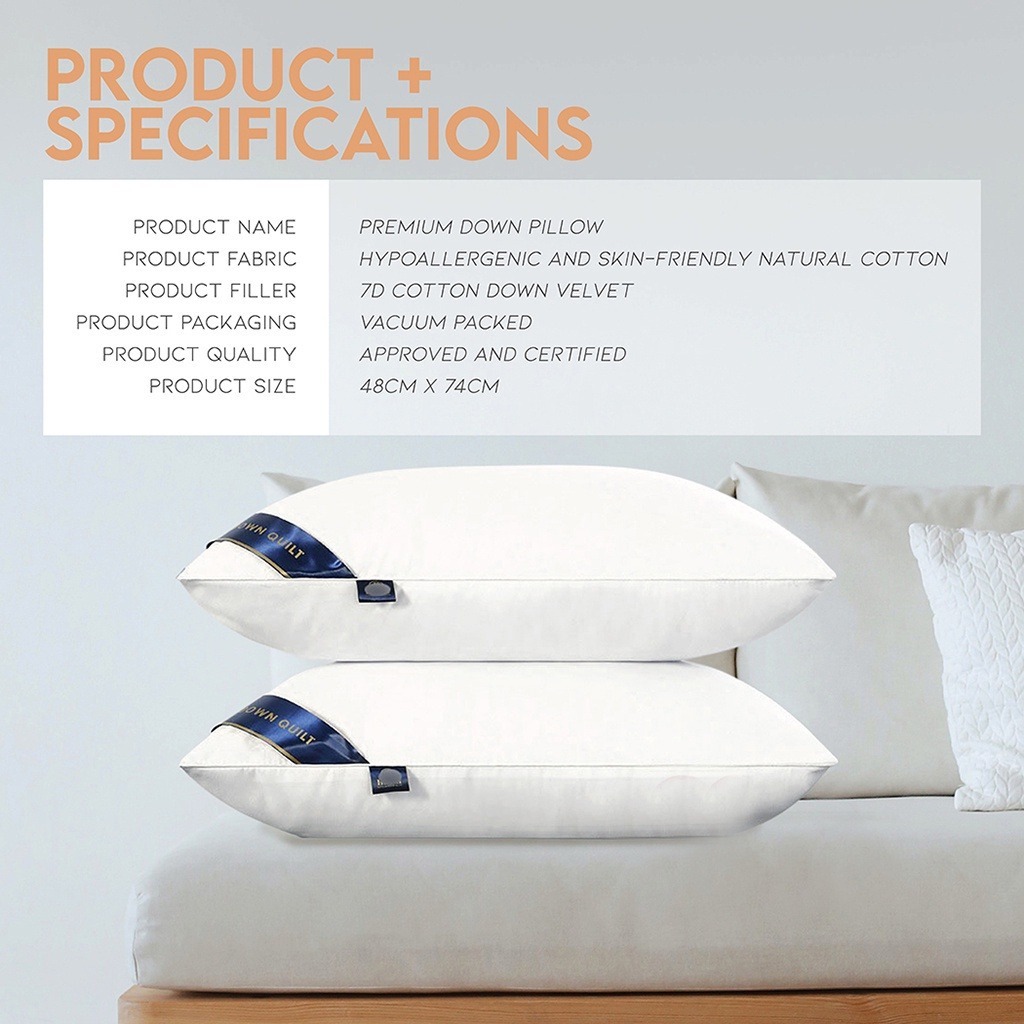 Sleeping Pillow by Hilton - Luxurious Plush Material with 100% PP Cotton Filling, Standard 48 x 74cm Size
