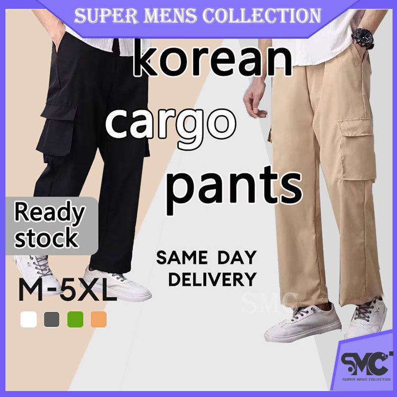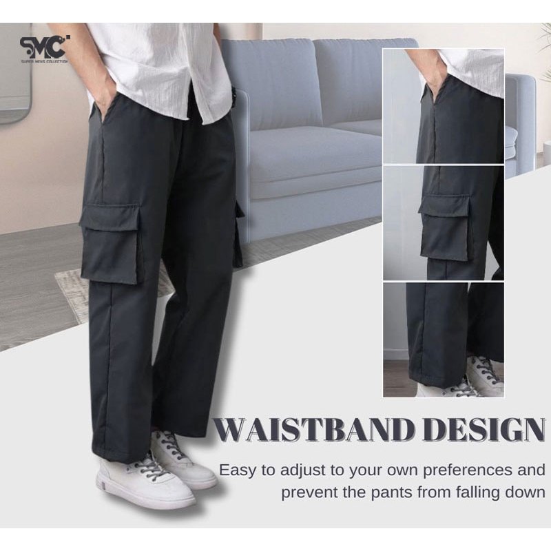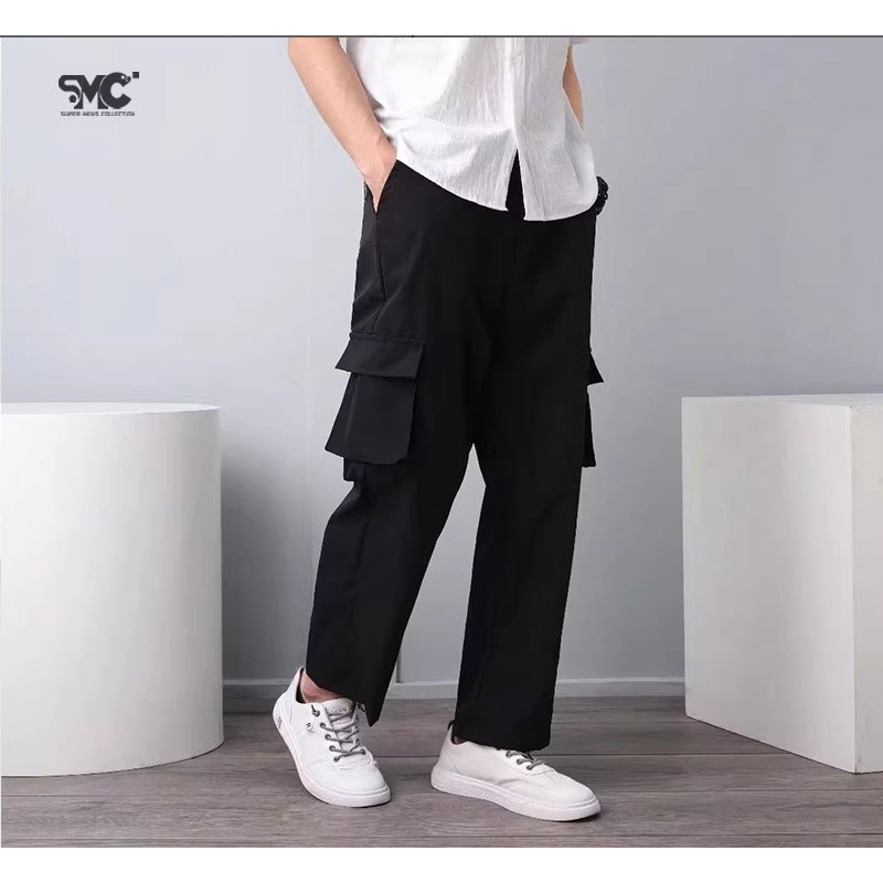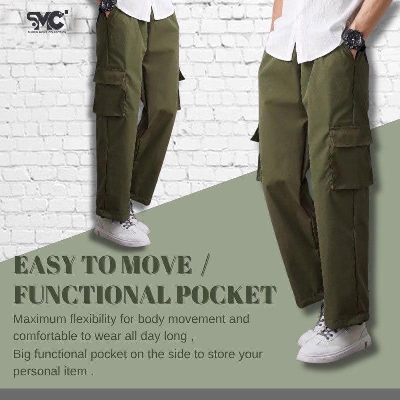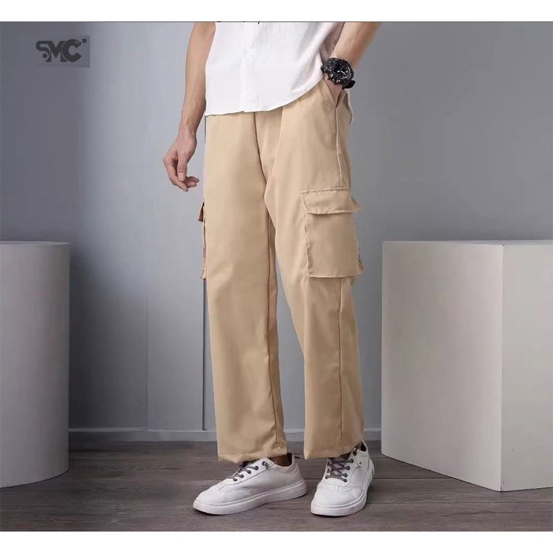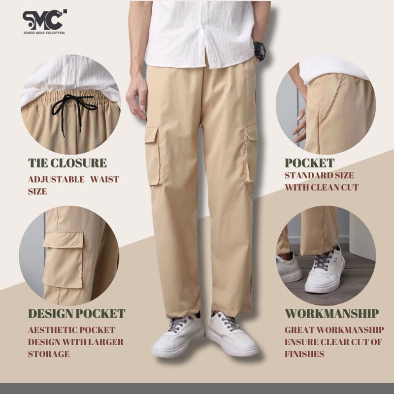 SMC NEW Oversize Khaki Multi-pocket Straight Cut Casual Men Long Couple Cargo Pants Seluar Panjang Lelaki Slack