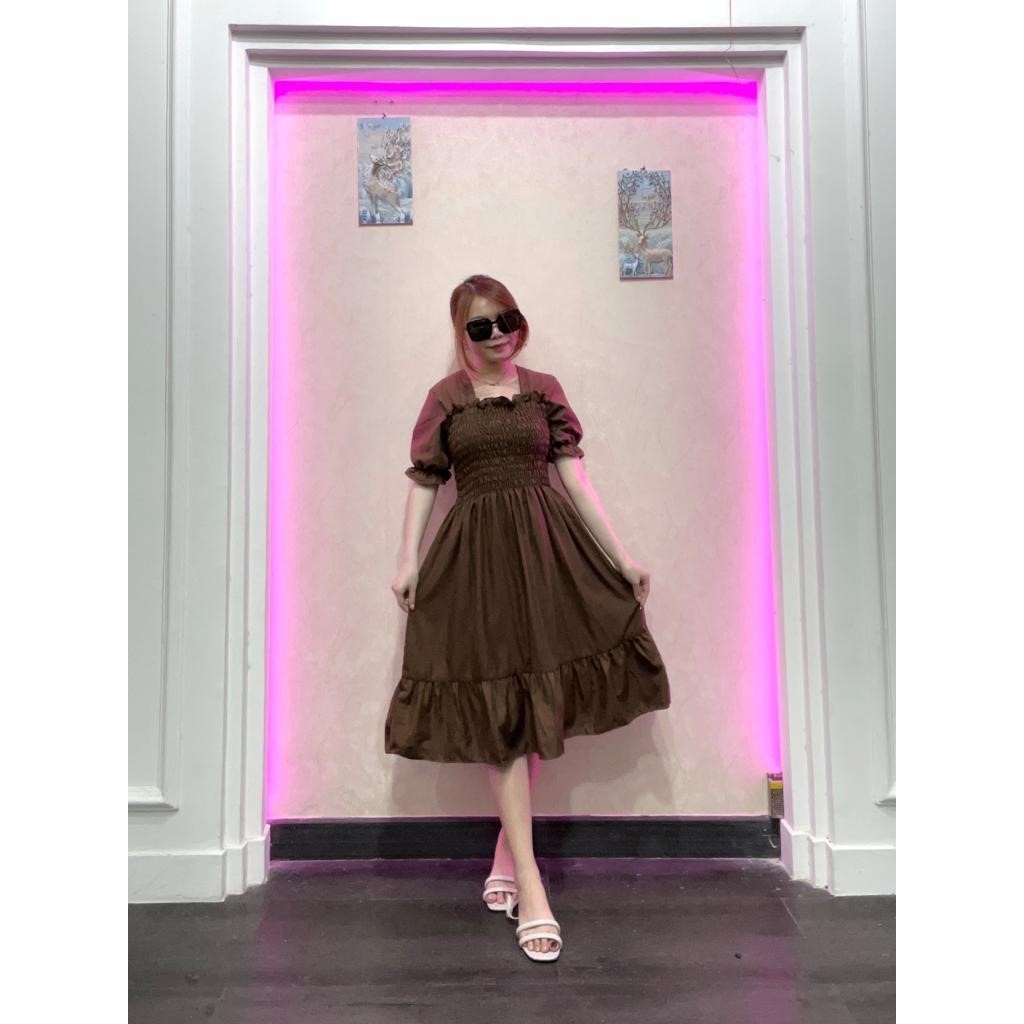 SMOCKED DRESS / New casual summer dress Short sleeve smocked floral pleated dress with back tiev