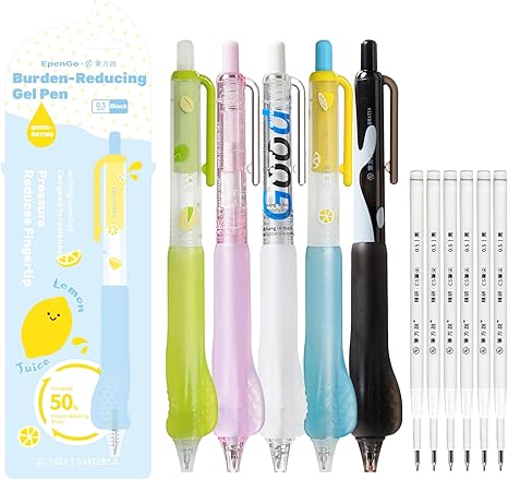 Smooth Writing Pens - Fine Point 0.5mm Black Ink Gel Pen, Retractable Click Design with Soft Grip Cushion, 5 Pcs for Office & School Supplies (5 - Pack + 6 Refills)