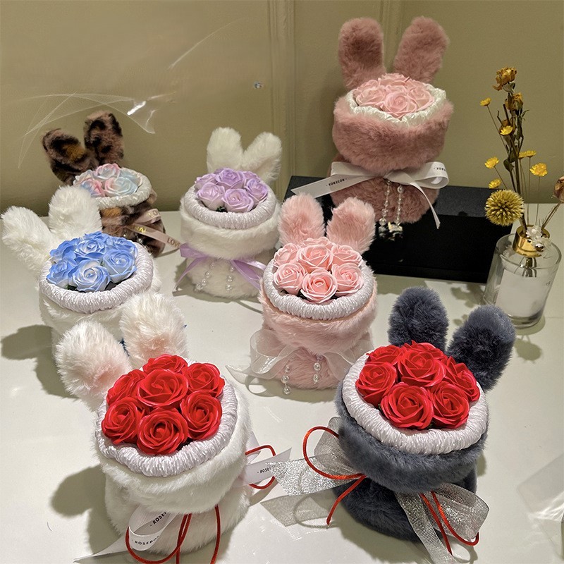 Soap Rose Flower Amazing Cute Baby Rabbit stalk flower bouquet Present Gift Friend Girlfriend