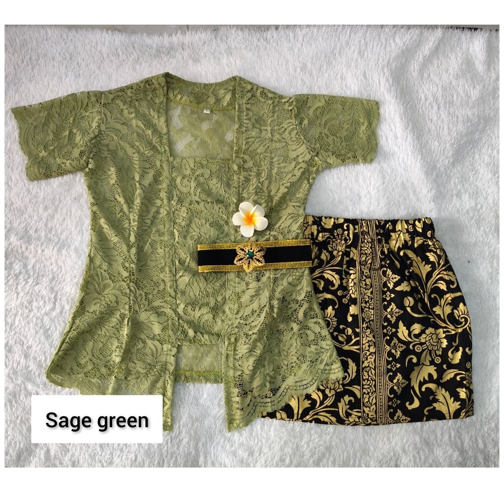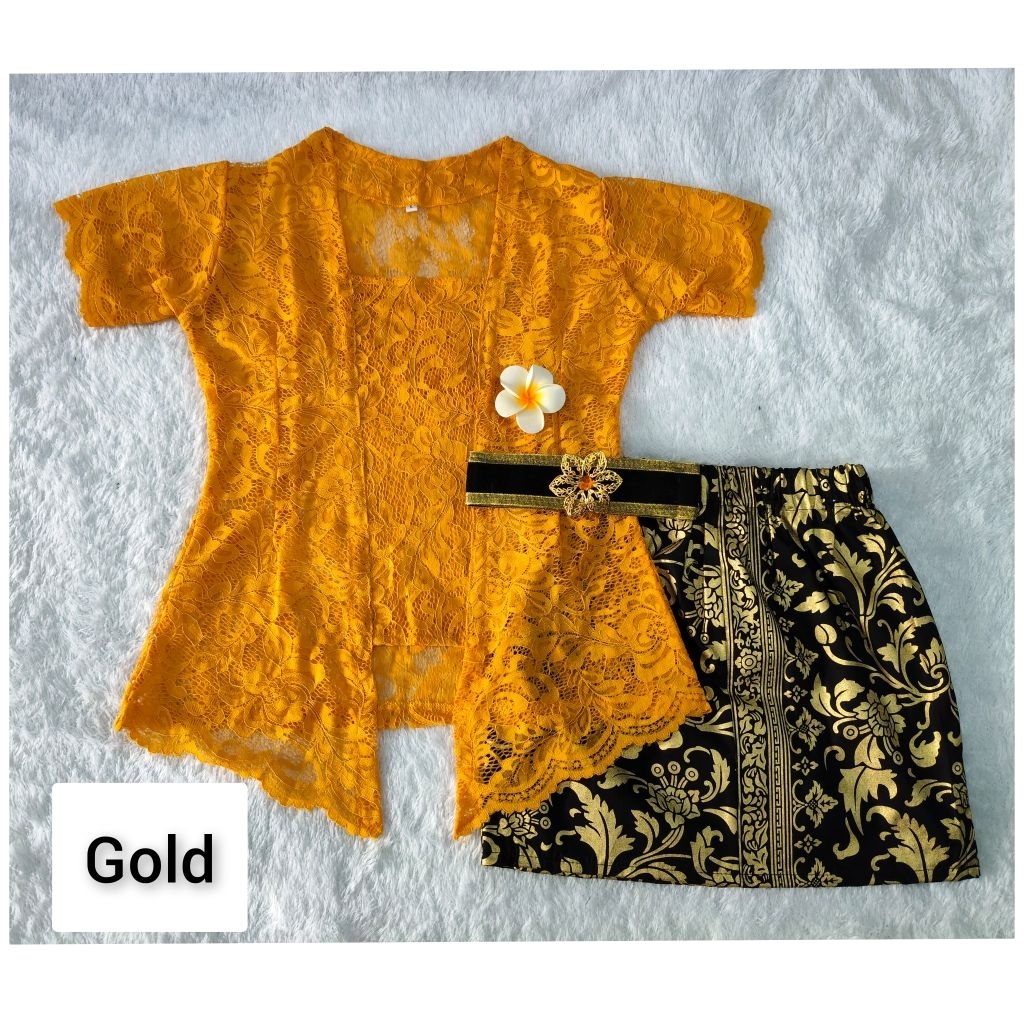 Sofia short kebaya set with gold lily mini skirt and modern kebaya obi