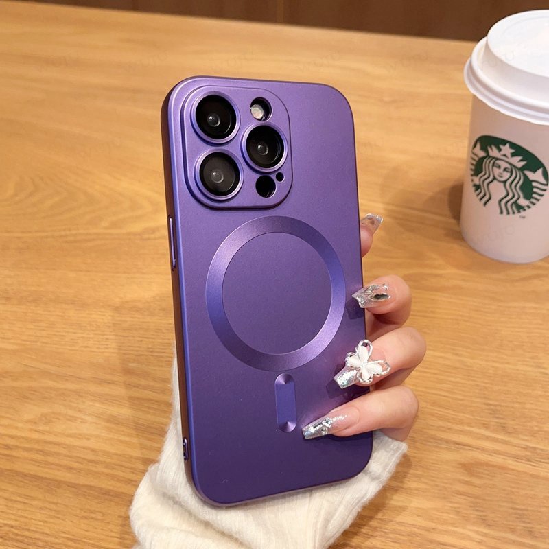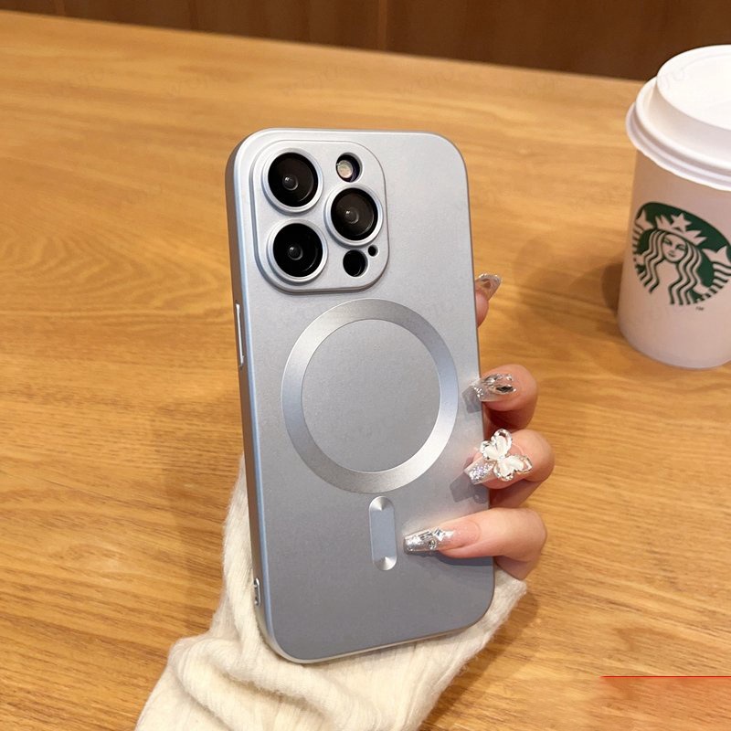 Soft Magnetic Wireless Metallic texture Luxury Magnetic Charge Phone Case Compatible For iPhone 17 16 14 13 12 11Pro Max