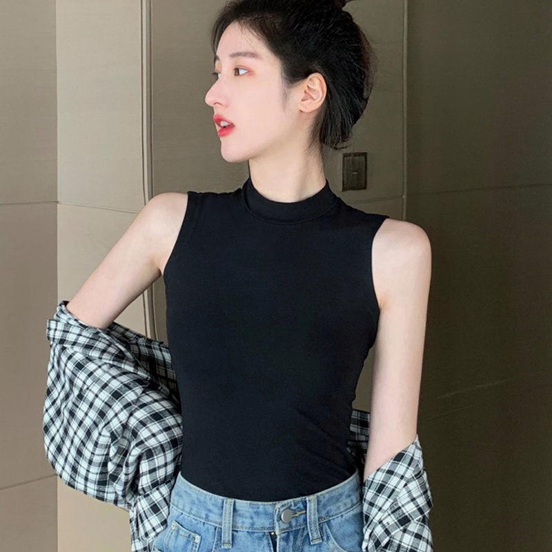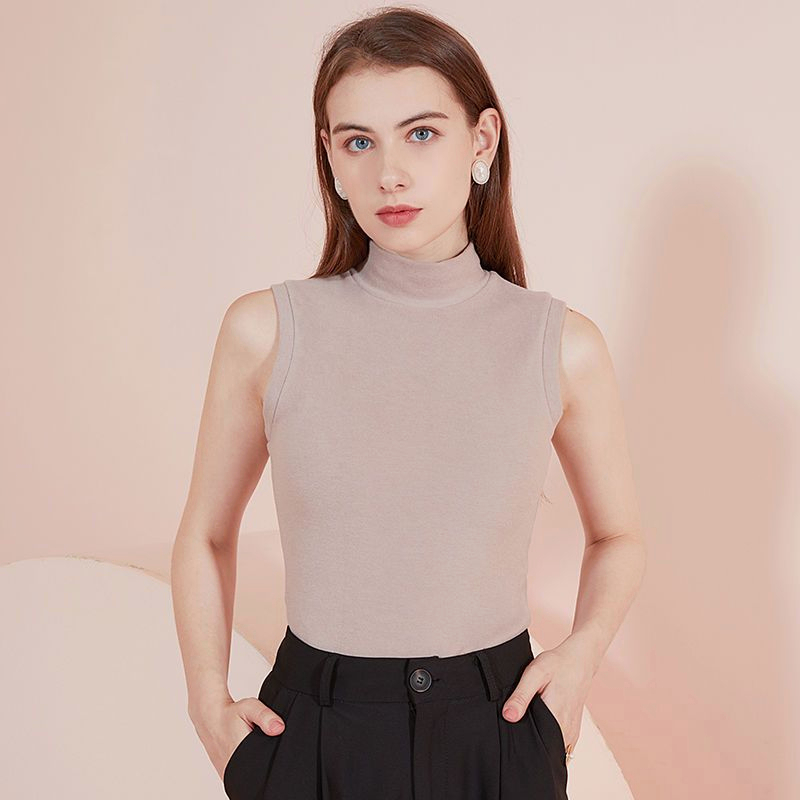 Solid Casual Sleeveless Tops For Women Slim Fit Sleeveless Turtleneck Women Singlet Turtle Neck Inner Lengan Pendek