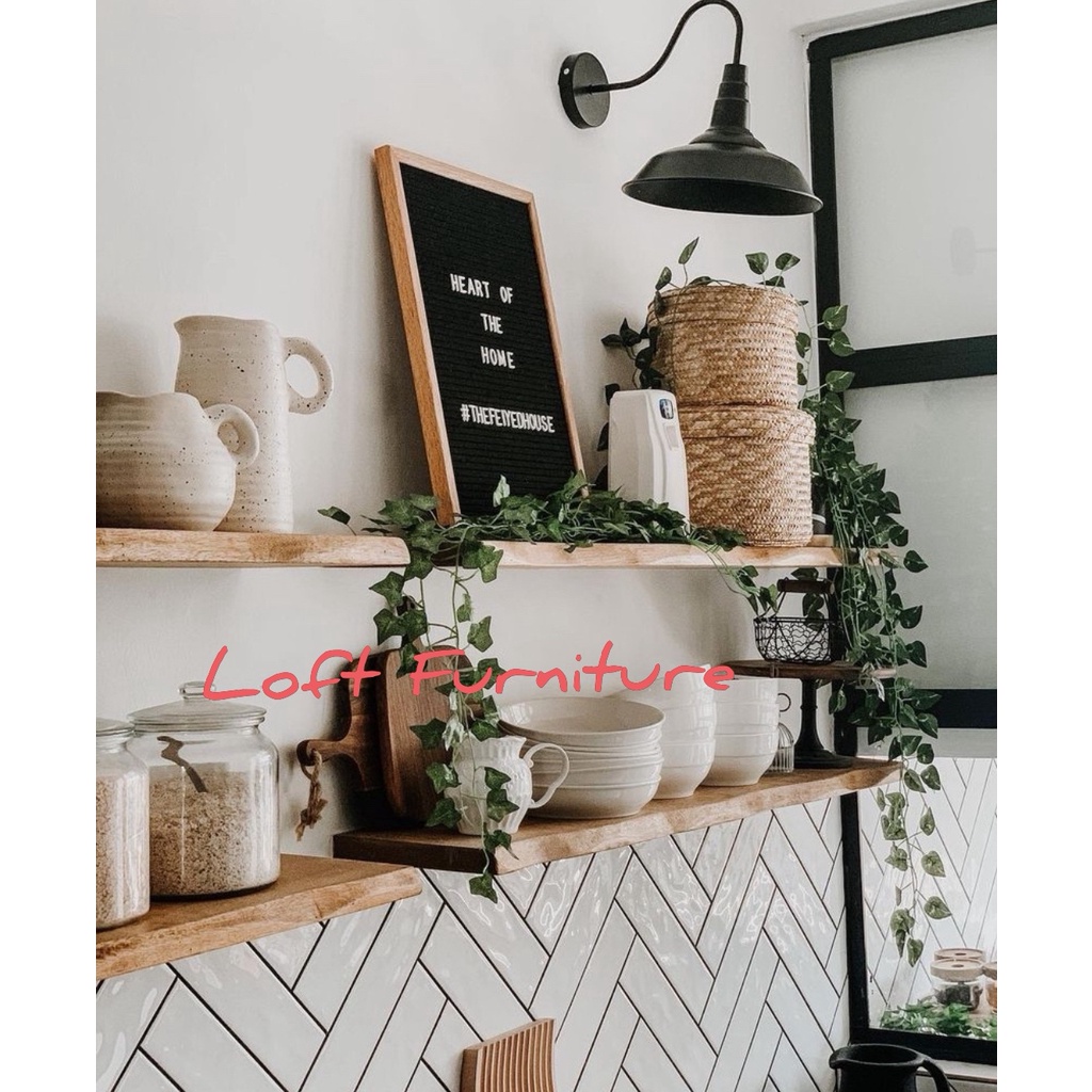 Solid Wood Floating Shelf (Classic Series)Loft Style Natural LiveEdge Curve Design Solid HardWood Sky Floating Shelve.