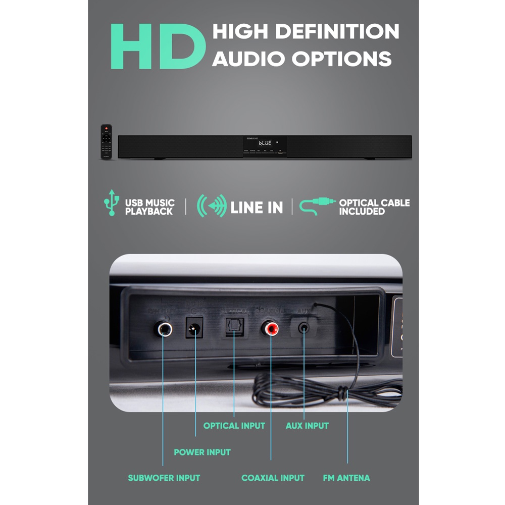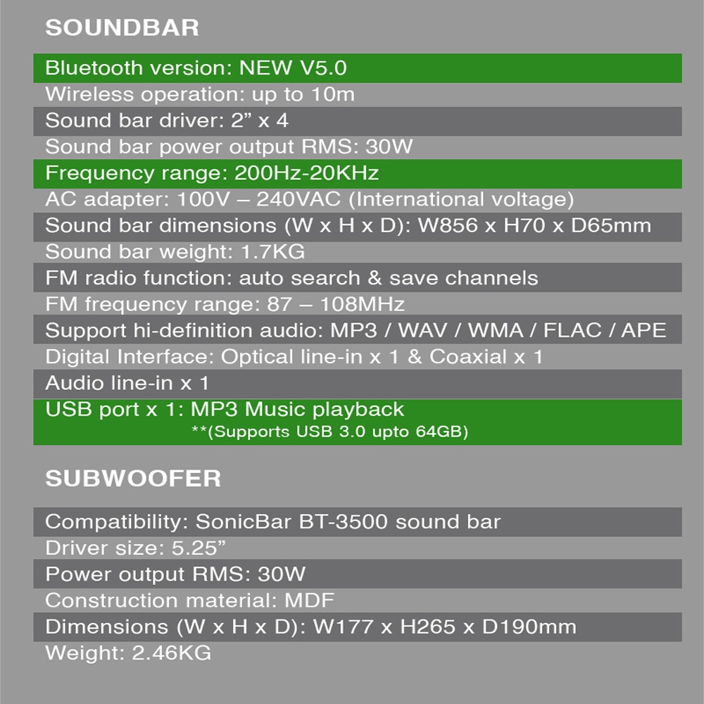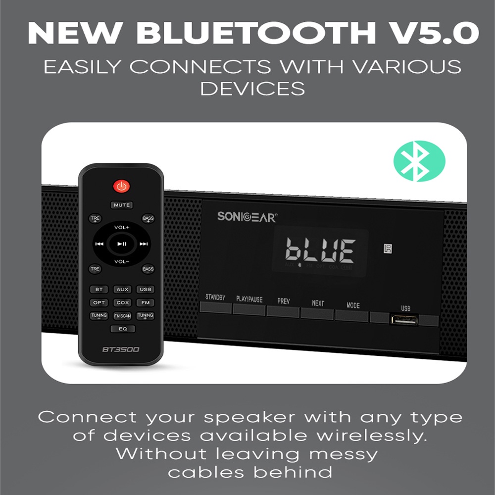 SonicGear SonicBar BT3500 Soundbar and Subwoofer | Bluetooth 5.0 | FM Radio | USB Playback | 1 Year Warranty