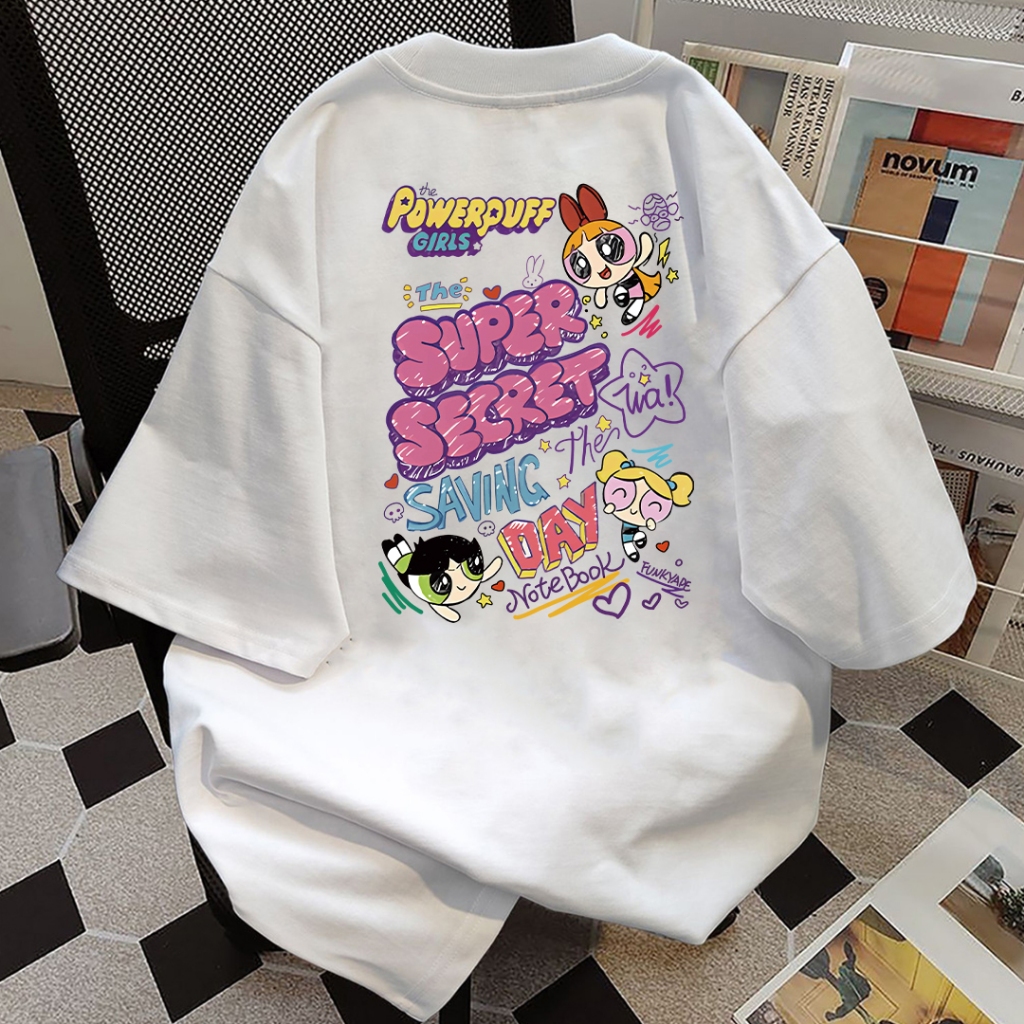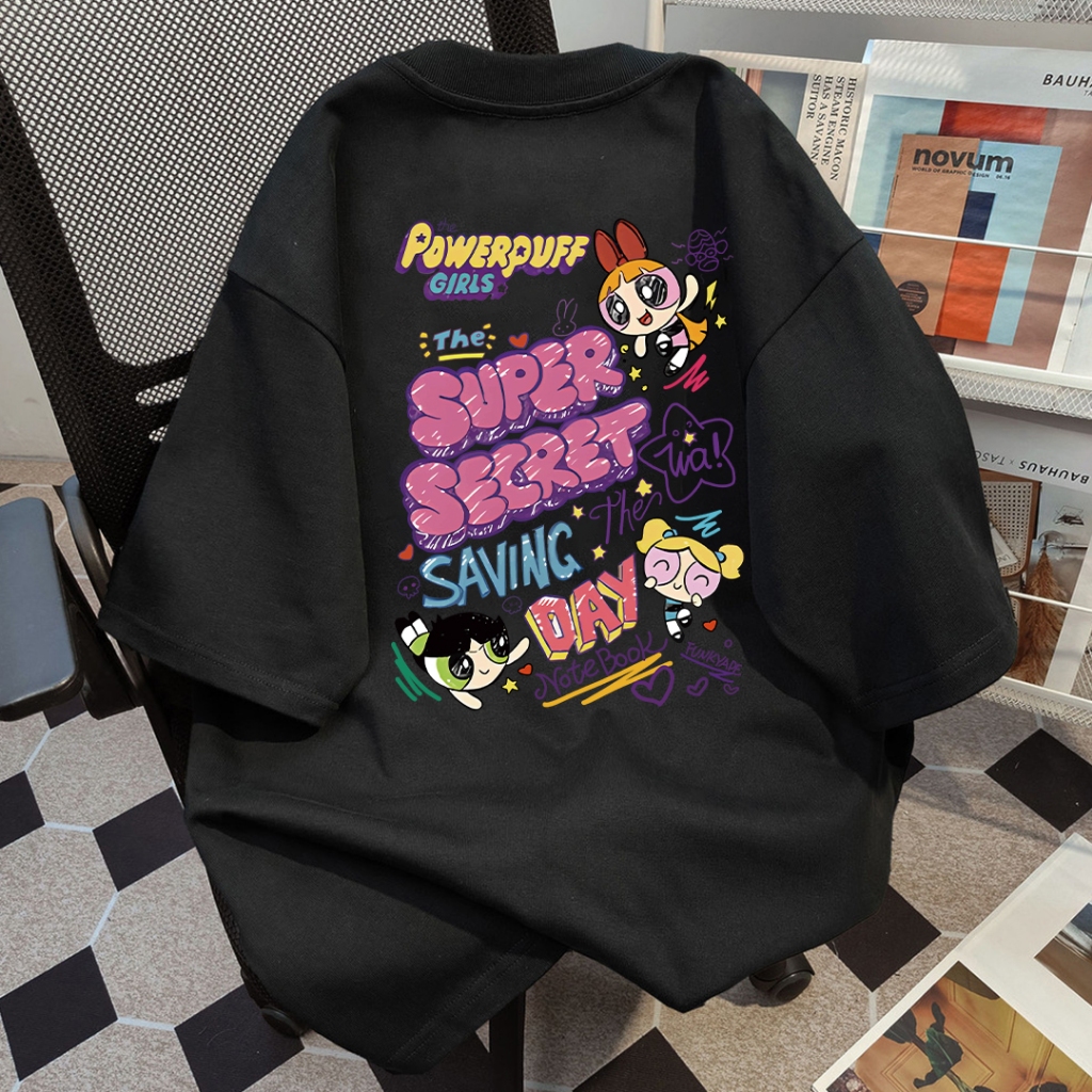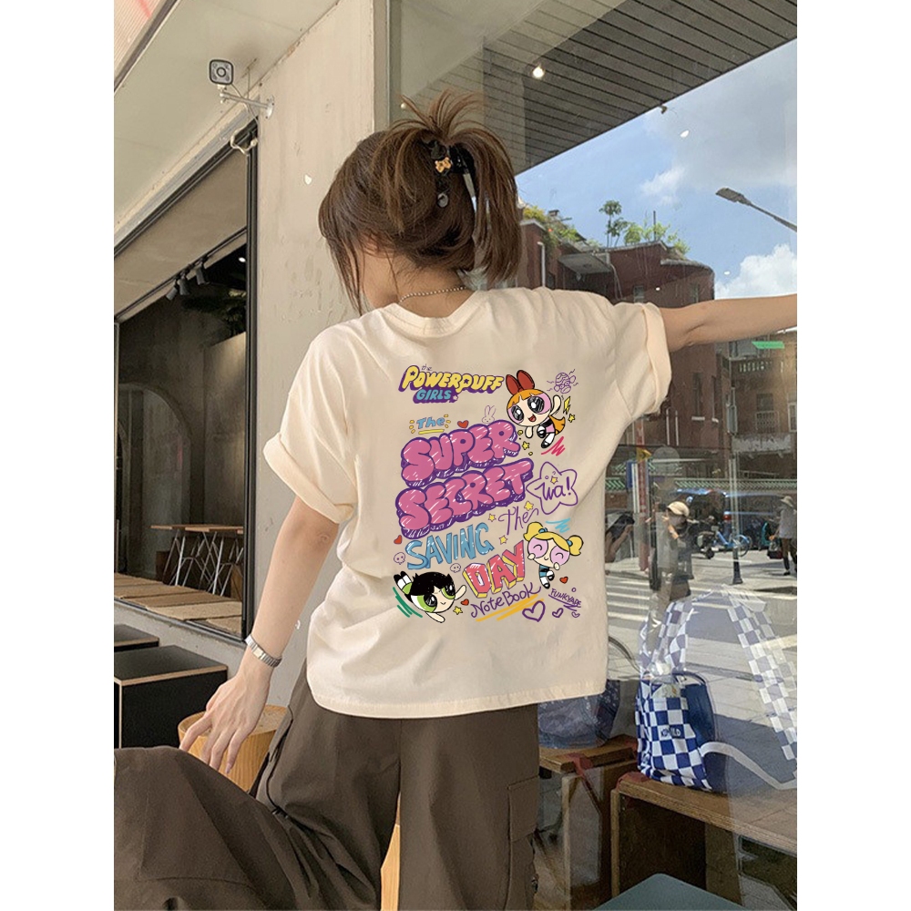 SOSO Korean retro Powerpuff Girls colorful graffiti comic oversized casual loose T-shirt for women top