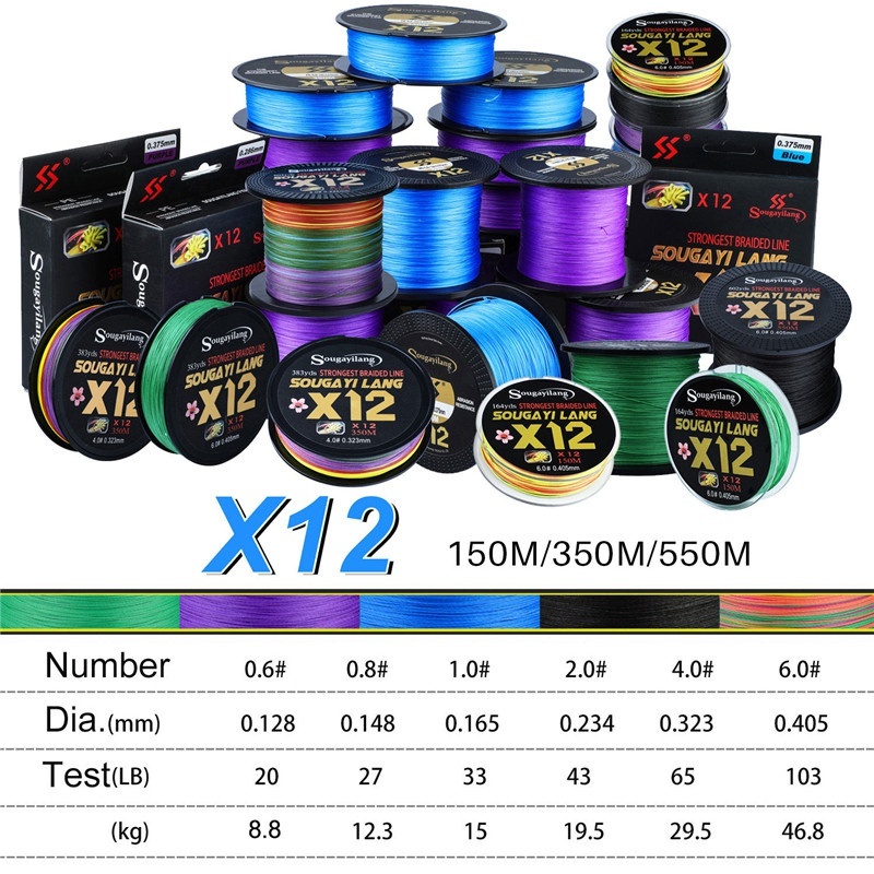 Sougayilang 150/350m 12X Strands Braided Fishing Line PE Line Braided Fishing Line 8.8kg-46.8kg Super Fishing Line