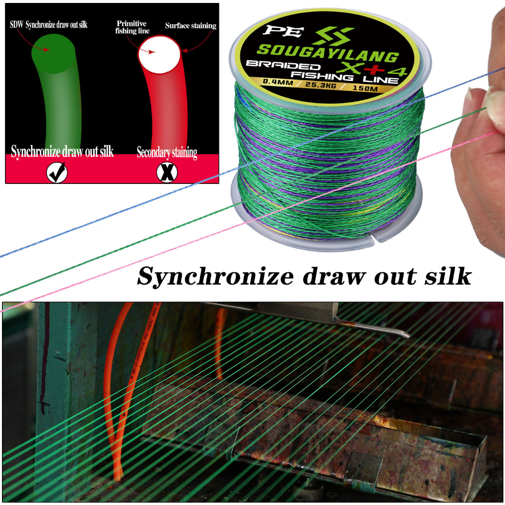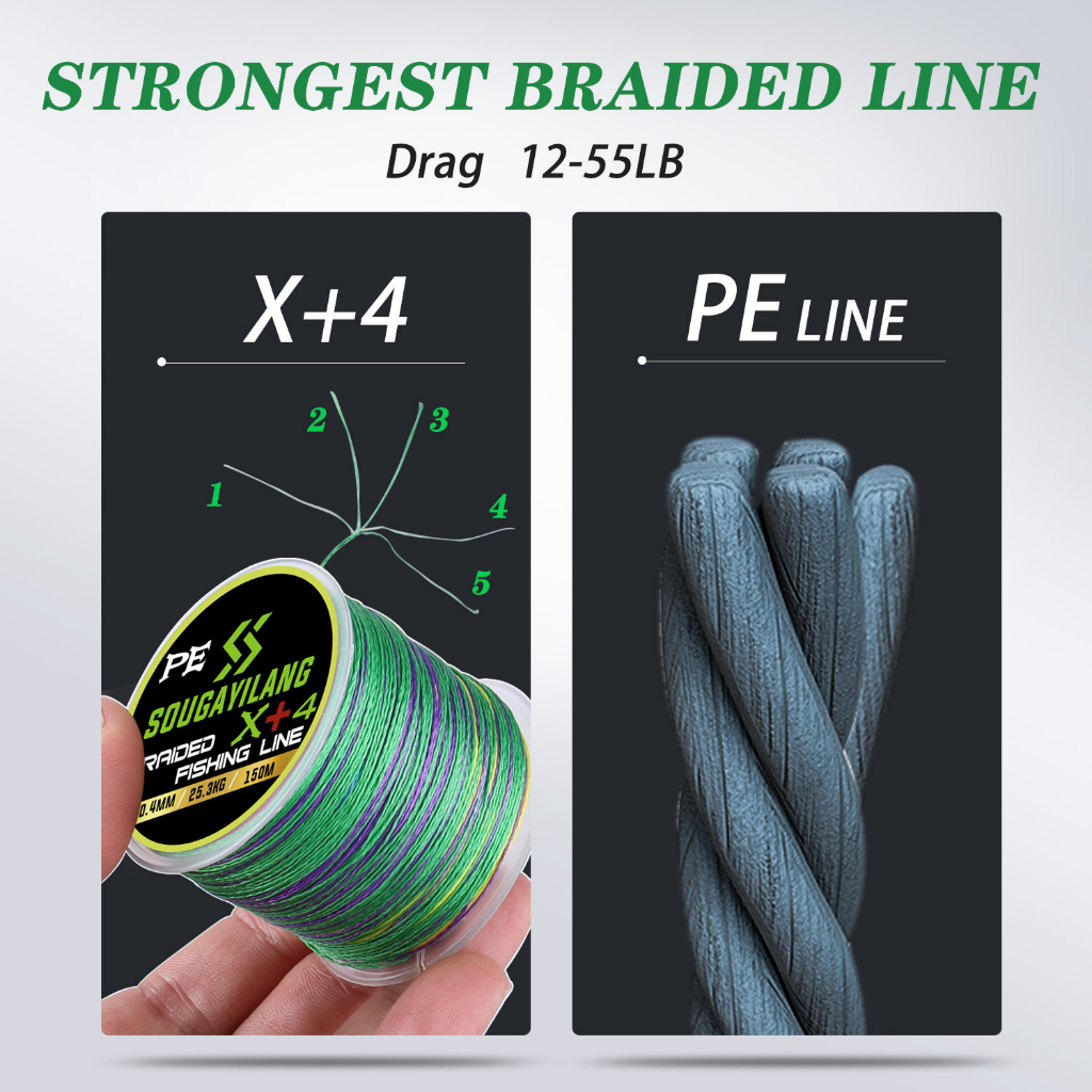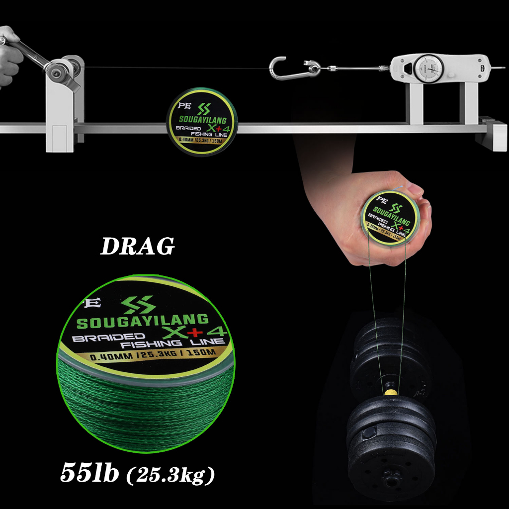 Sougayilang 4X PE Fishing Line 150M Braided Line Multifilament Line Floating Line Fishing Wired 5.6kg-25.3kg