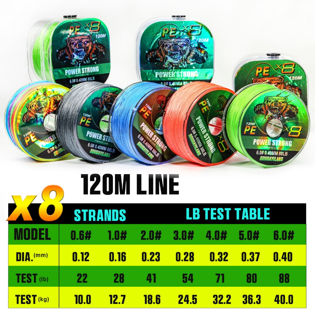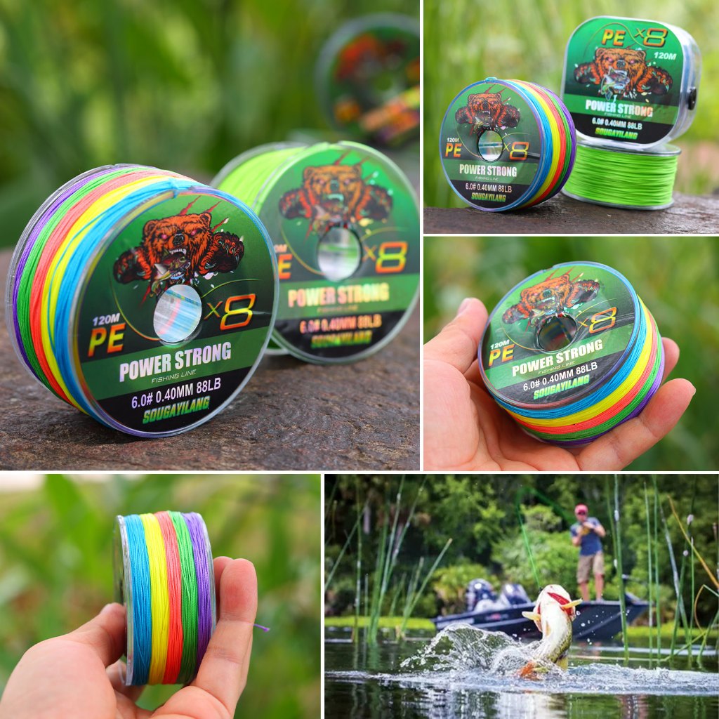Sougayilang 8 Stands Fishing Line 120m 10-40kg Fishing Line PE Line Fishing Line Strong Fishing Line For Outdoors Multicolor Blue Green Grey Orange Line