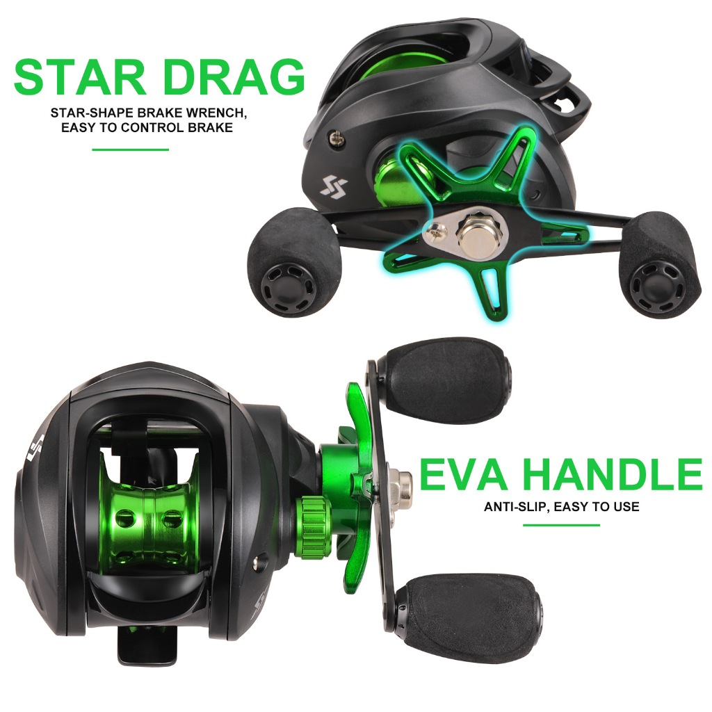 Sougayilang Baitcasting Fishing Reel 7.2:1 Gear Ratio High Strength With Metal Handle (Max Drag 10kg)