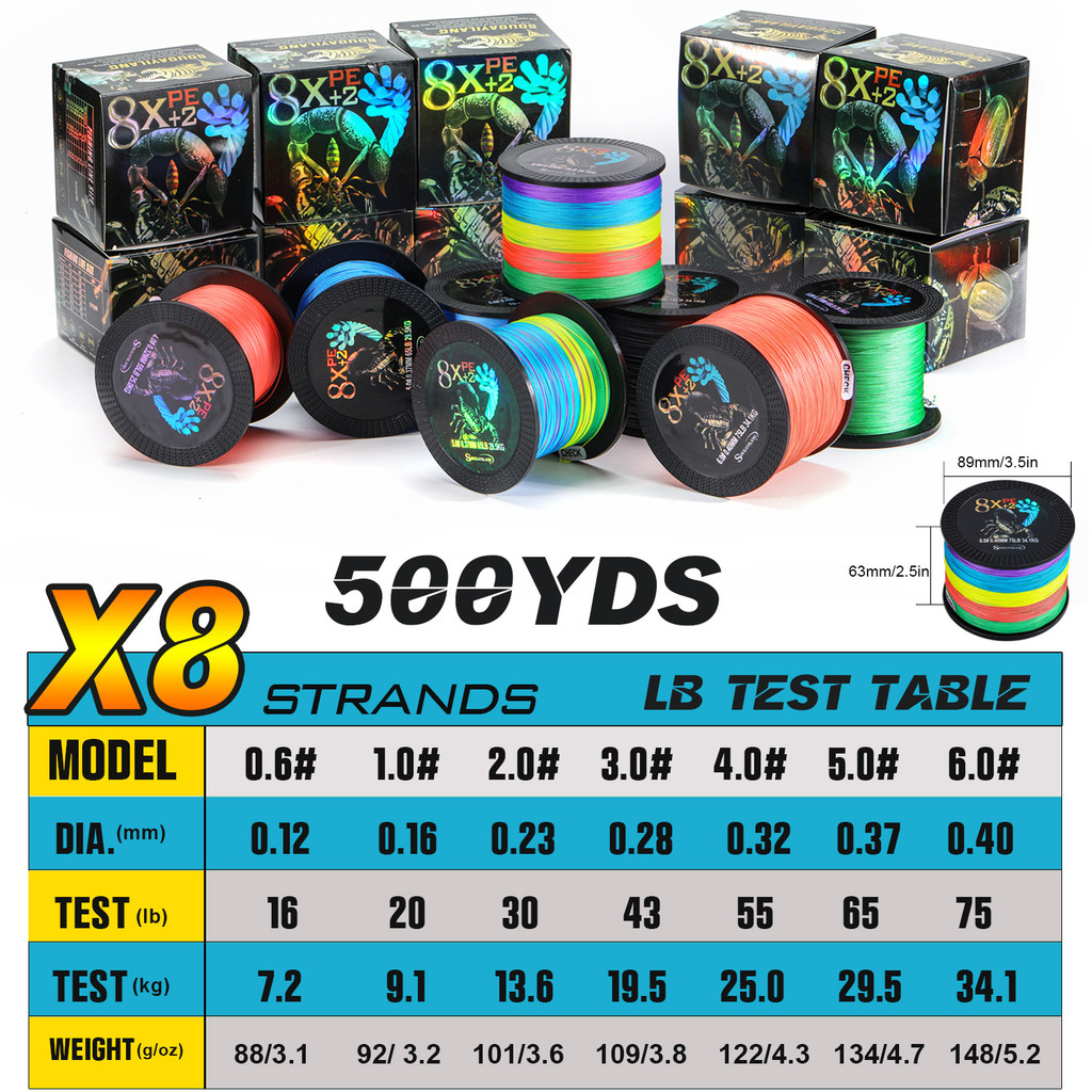 Sougayilang Fishing Line 8X+2 PE Braided 500M 75LB 34.1KG Tali Sulam Benang Ikan For Joran Pancing