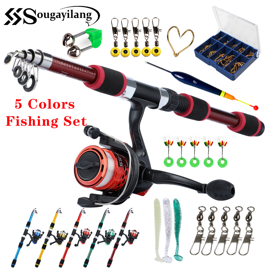 Sougayilang Fishing Set 1.8m/5.9ft Telescoping Fishing Rod 3bb 5.5:1 Fishing Reel Fishing Bait Set For Children Fishing