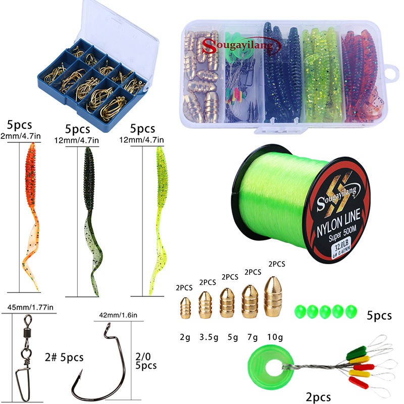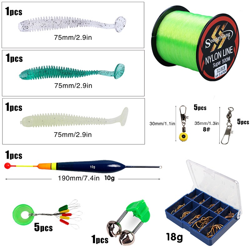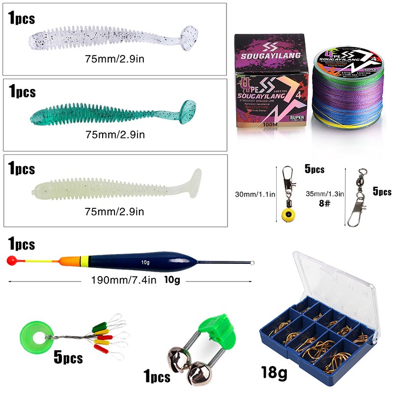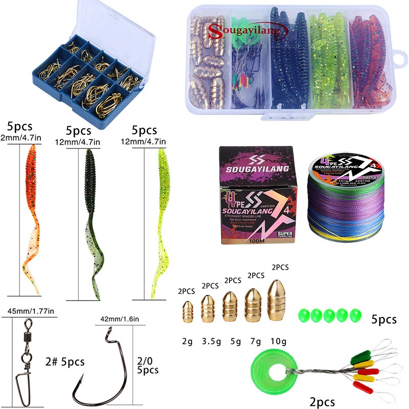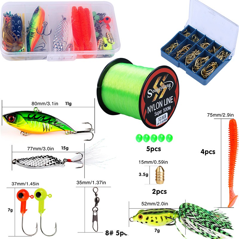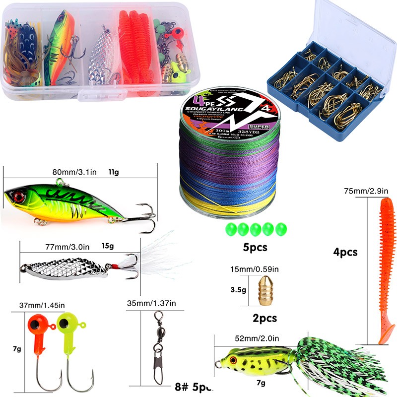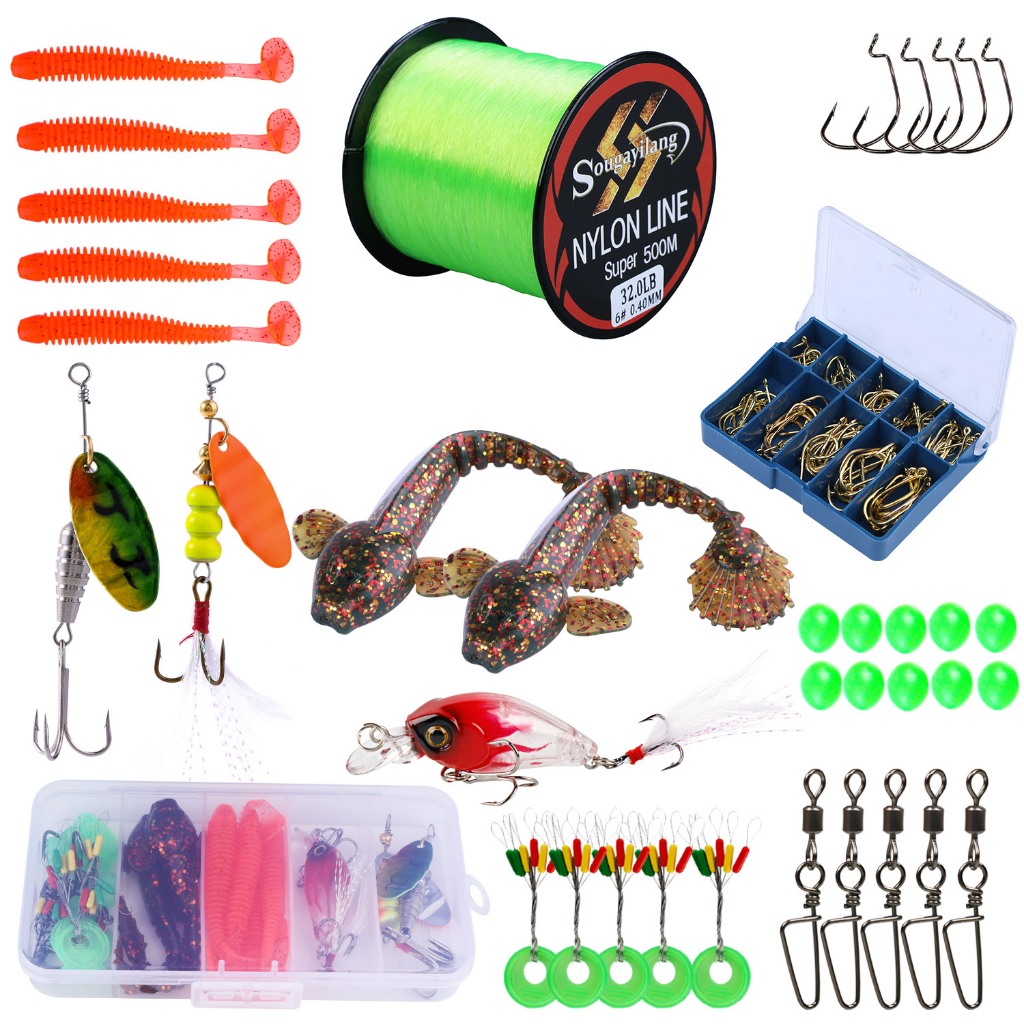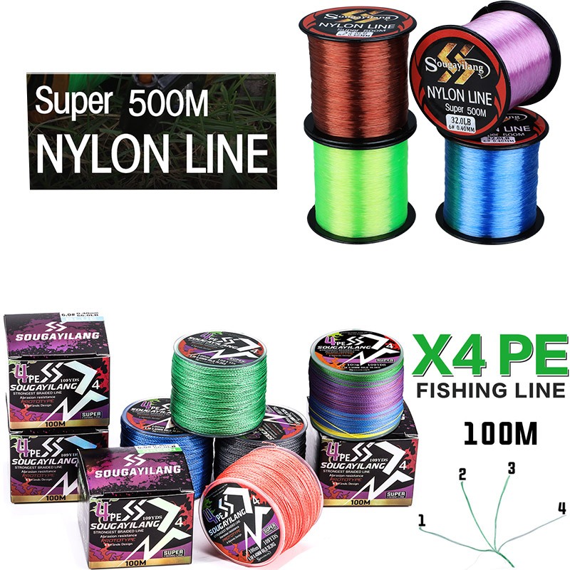 Sougayilang Fishing Set 100/500M PEX 4 Braided/Nlon Fishing line&Fishing Bait Lure Set