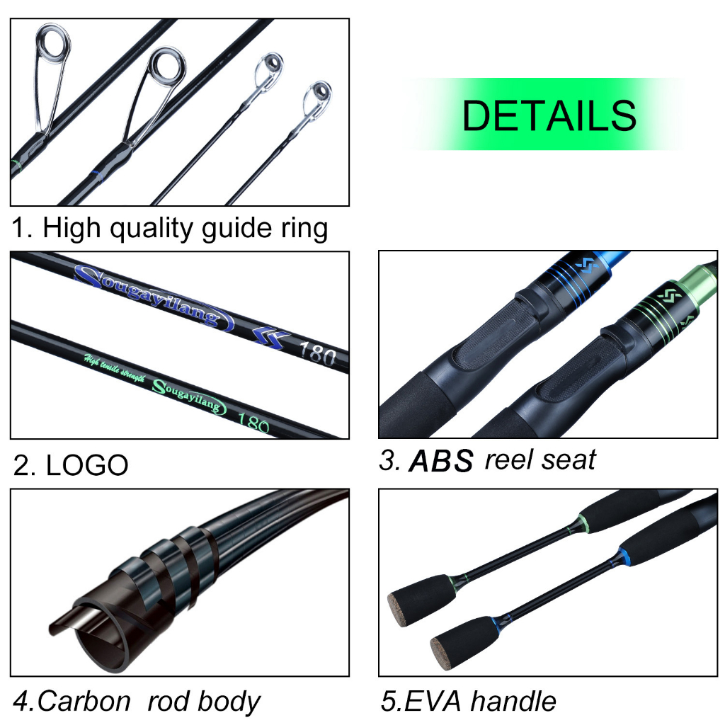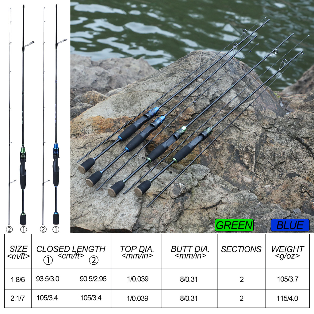 Sougayilang Spinning Fishing Rod 2 Sections Solid Tip Micro-Jigging Rod Carbon Fiber Ultra Light (1.8-2.1M)