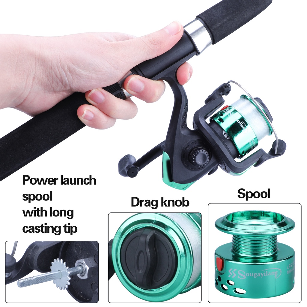 Sougayilang Spinning Rod With Gear Ratio 5.2:1 Spinning Reel With Fishing Line For Freshwater/Saltwater (1.2M)