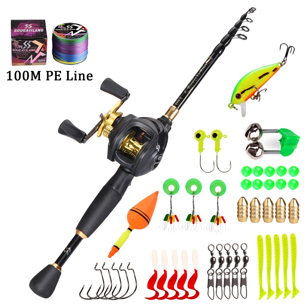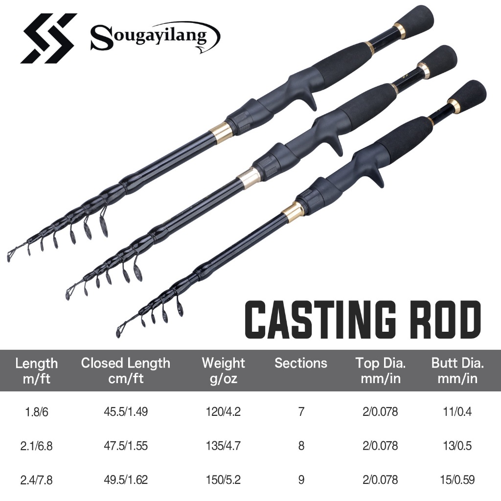 Sougayilang Telescopic Fishing Rod Set 1.8-2.4M Carbon Fiber Fishing Rod 7.2:1 Gear Ratio Fishing Reel Closed Length 50cm Protable Fishing Rod Set