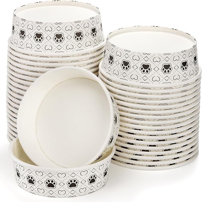 SOUJOY 40Pcs Disposable Pets Bowls, 16 oz Paper Dog Food Bowl, Cute Foot Print Design Travel Cat Feeding Bowl for Small Dog Puppy Dry and Wet Food or Water