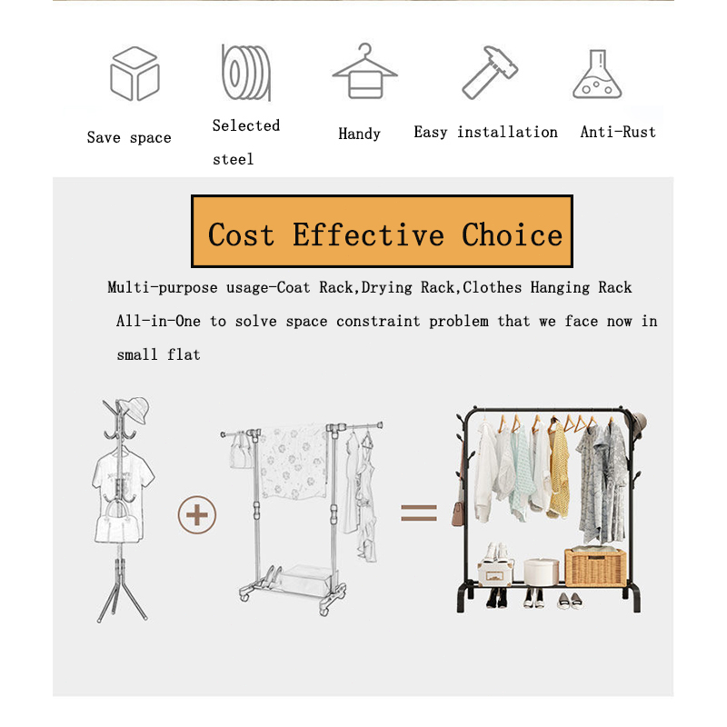 Space-Saving Metal Clothes Rack Organizer with Non-Slip Base