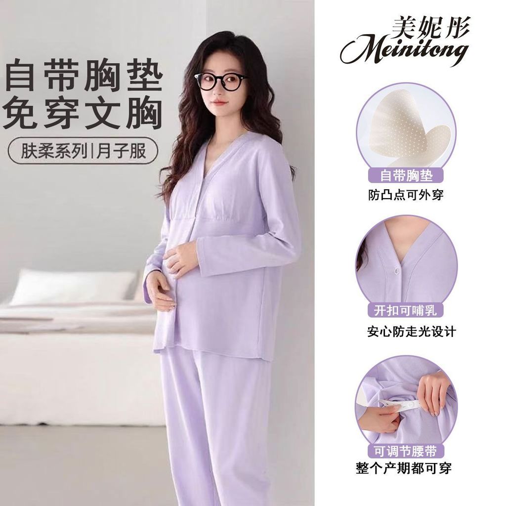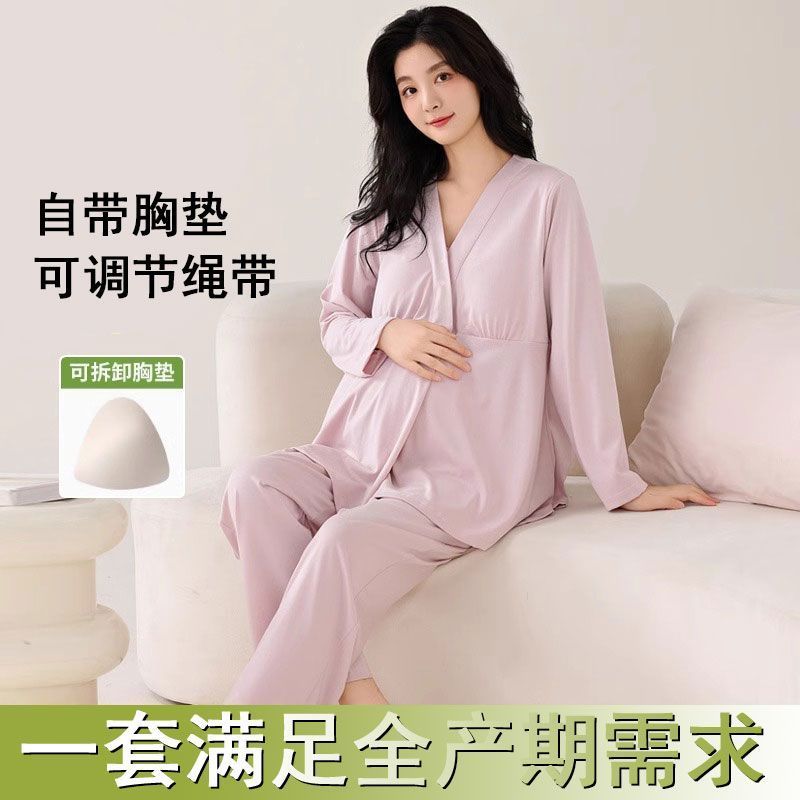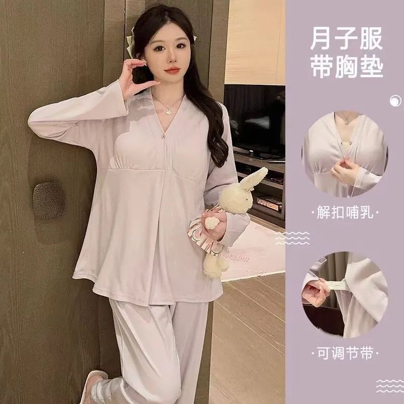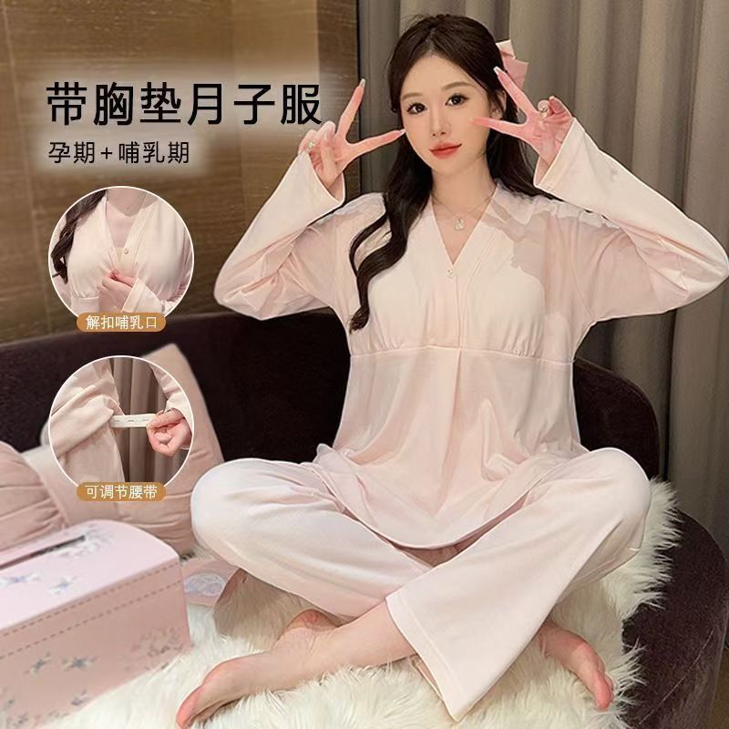 春秋季纯棉月子服带胸垫产后可哺乳孕妇睡衣女全阶段可穿调节腰带Spring and Autumn Pure Cotton Moon Clothing with Chest Pad Postpartum ningxiaxs.my20251018