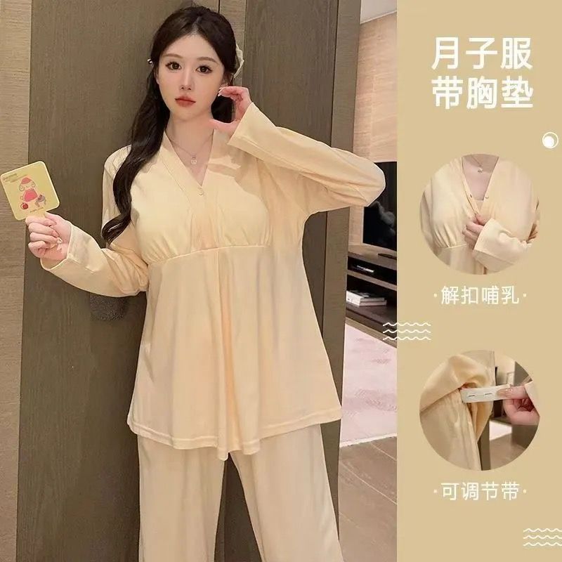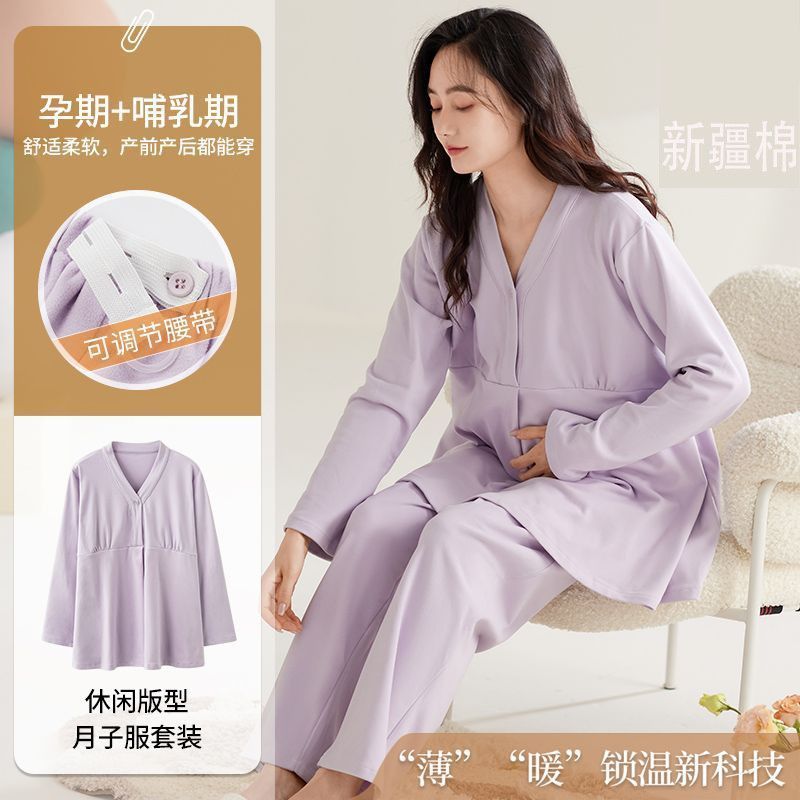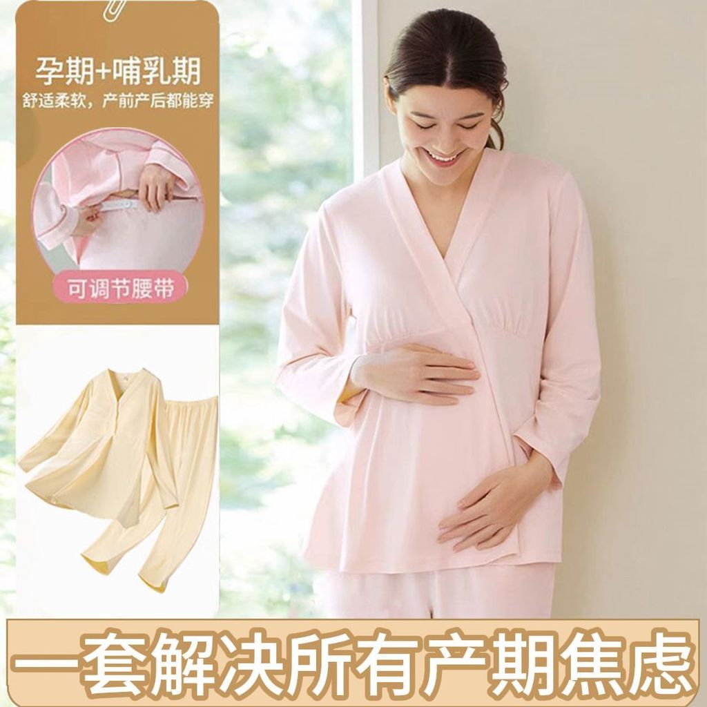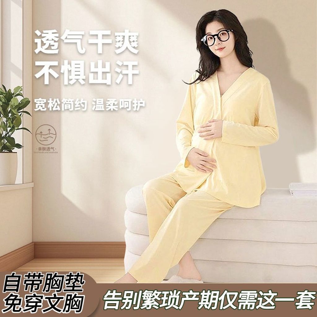 春秋季纯棉月子服带胸垫产后可哺乳孕妇睡衣女全阶段可穿调节腰带Spring and Autumn Pure Cotton Moon Clothing with Chest Pad Postpartum ningxiaxs.my20251018
